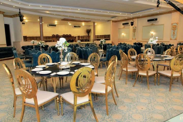 قاعه جميله جدا جدا جدا الكراسي كتيره وشكلها حلو اوي متزينه بلون دهبي المساحه بتاعت القاعه كبيره اوي الاصطف بتوع المكان ودودين طدا وبحاولو يفرحوك ويساعدوك ف كل حاجه ف الفرح المكان بجد مثالي لاس حفل مهما كان العدد والسعر جميل جدااااااااااا الاكل في نوعيات تقدر تجيب انت تقدر تخليهم يجيبو هما عادي جدااااا بصراحه احسن اختيار لاي فرح ممكن يتعمل واي مساحه ممكن تحتاجها لفرح زمعازيم كتير المكان نضيف جدا واحسن من احسن فندق خمس نجوم وسعره اقل بكتير من اي فندق خمس نجوم