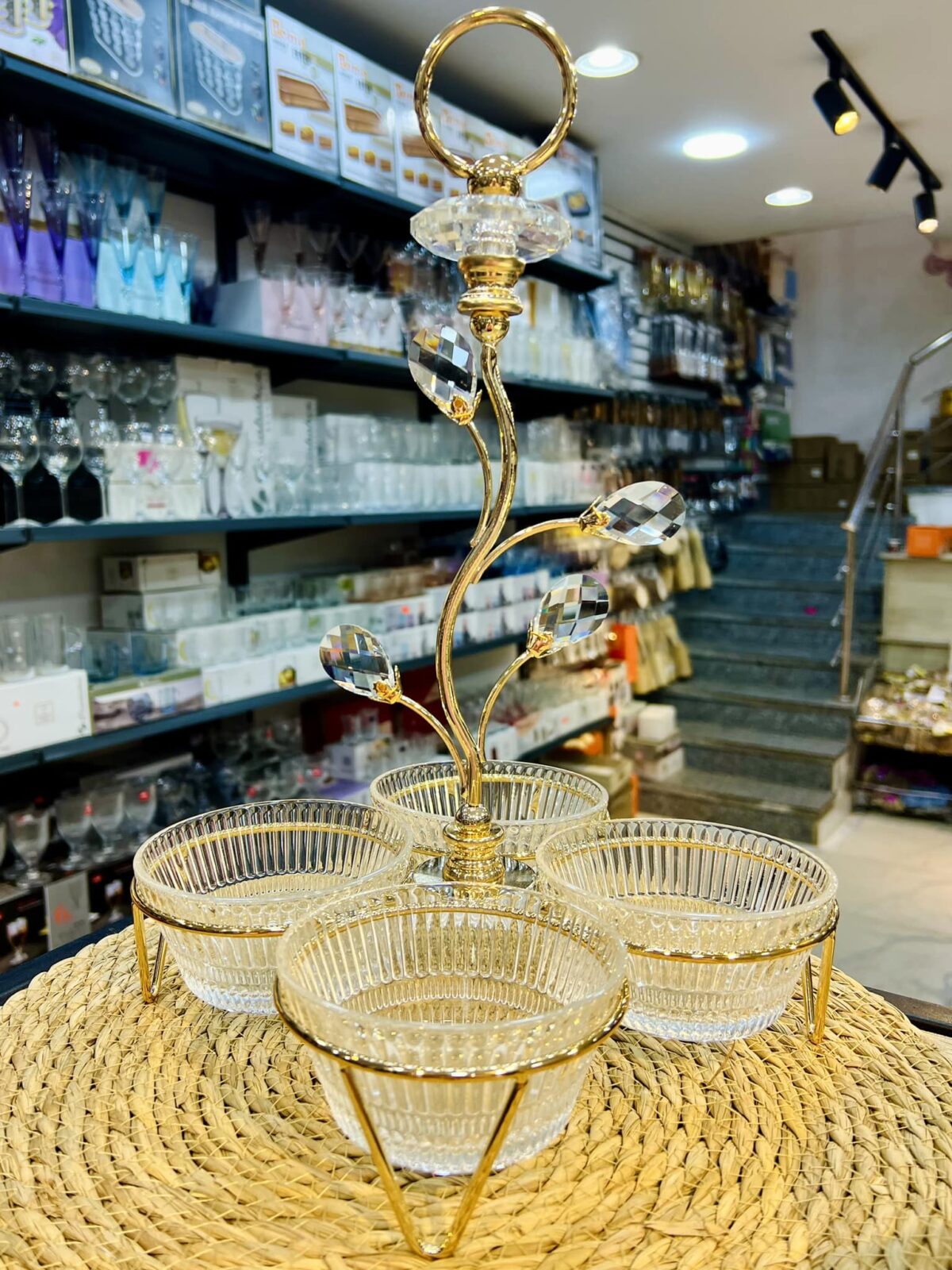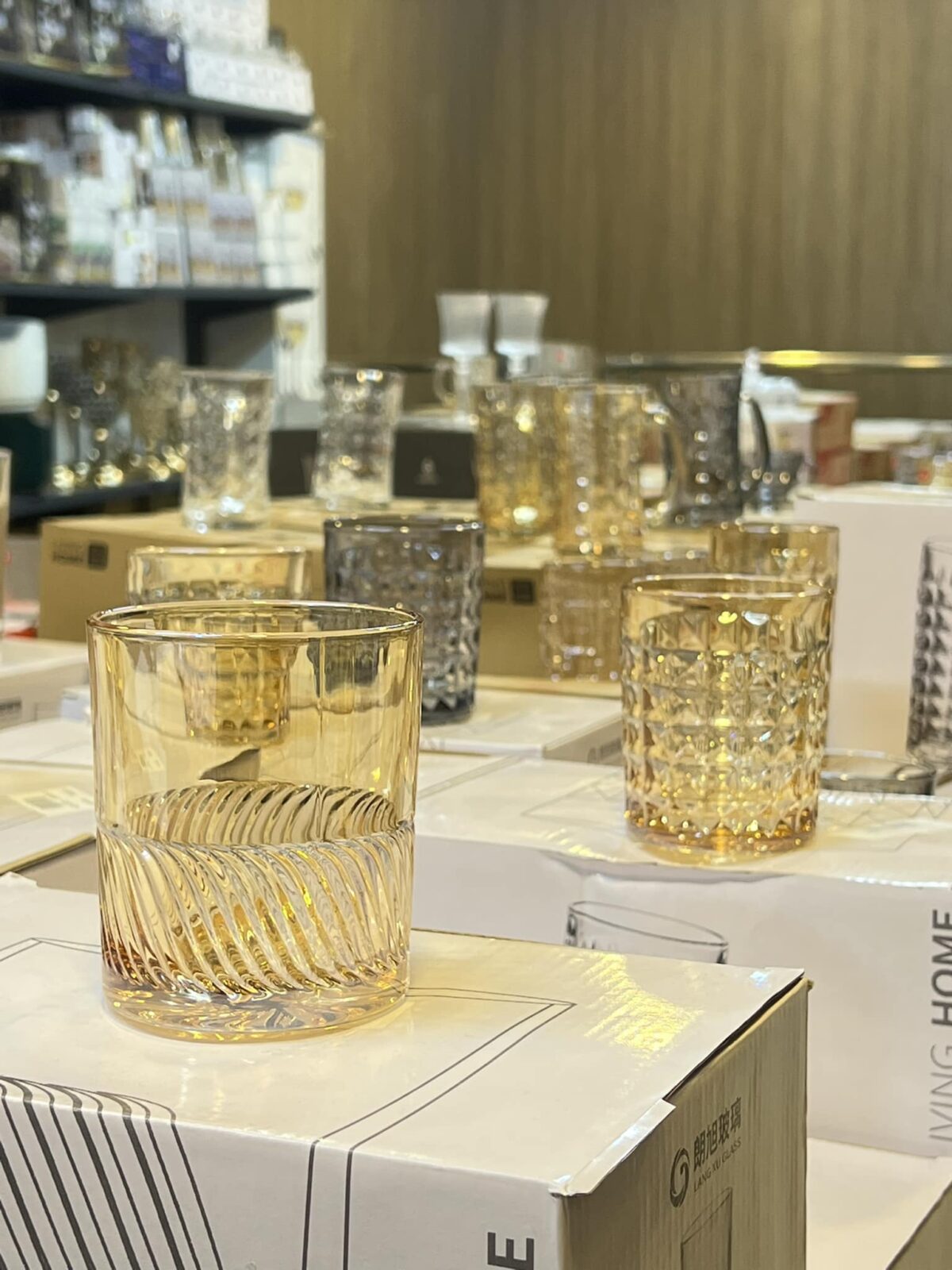 أما قسم السفرة والتقديم، فمليان أطقم أطباق بورسلين وزجاج بألوان محايدة أو نقوش بسيطة تناسب المودرن والكلاسيك، ومعاها كاسات عصير وفناجين شاي وقهوة. كمان فيه صواني تقديم وأباريق عملية وأنيقة تدي شكل متكامل وتسهّل الضيافة سواء في المناسبات أو الروتين اليومي.