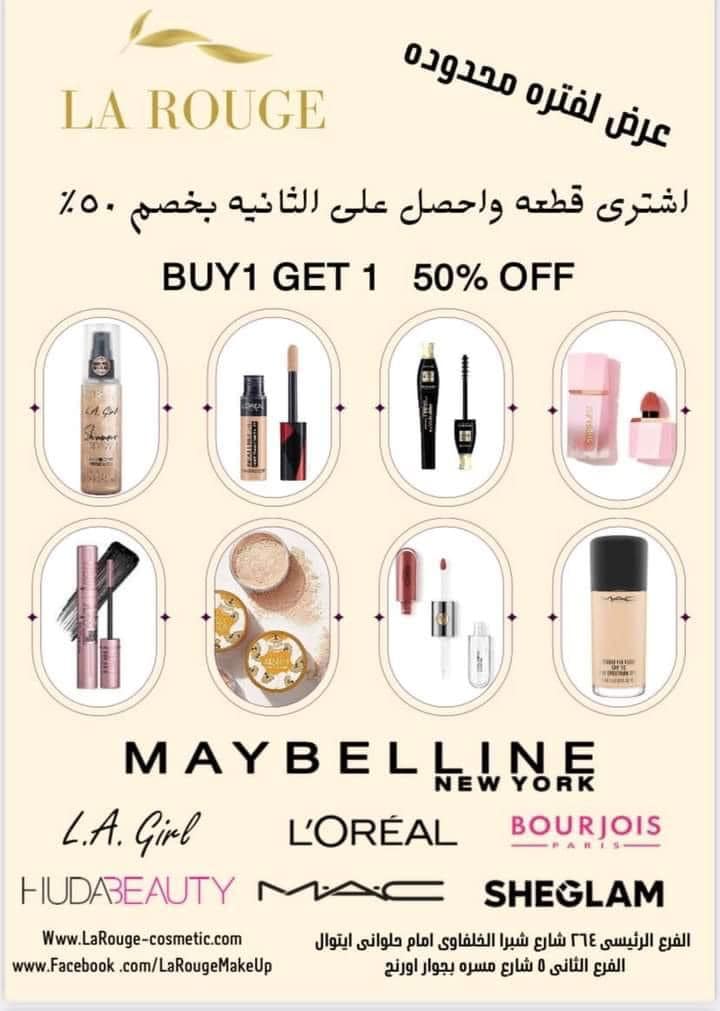 كمان الأسعار في La Rouge مناسبة جدًا، وبيعملوا عروض وخصومات بشكل دوري، علشان تشتري أكتر وتوفّري في نفس الوقت. سواء كنتي بتدوري على حاجة معينة أو بتفتحي نفسك على الجديد، هتلاقي اللي يناسبك.