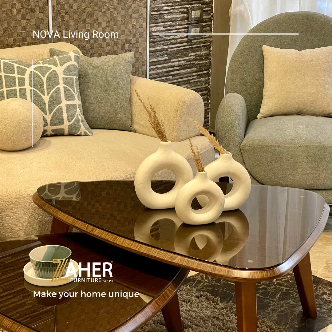 غرف المعيشة عند Zaher فيها ركنات، كنب، وطاولات بتصميمات مريحة وعملية، تناسب المساحات الكبيرة والصغيرة. كل قطعة معمولة علشان تدي للبيت لمسة دافية ومنسجمة.