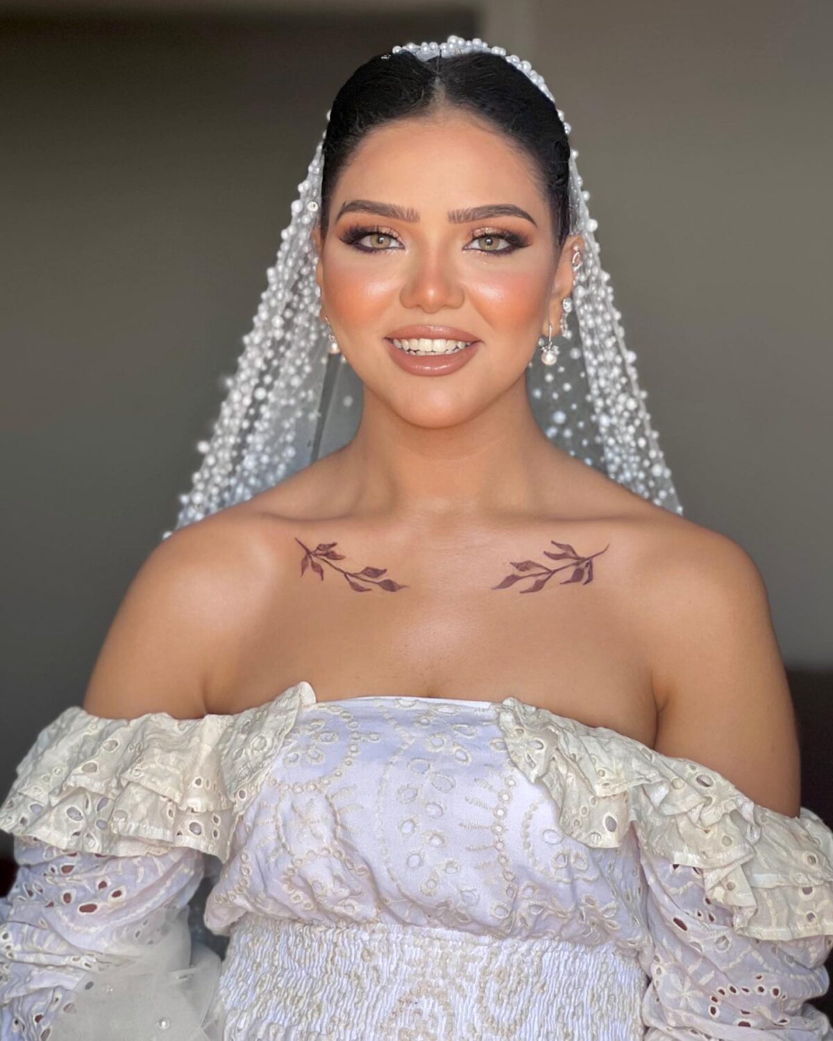 Menna بتركز على إن الطرحة تكون بخامات مريحة زي التل والشيفون، علشان العروسة تحس بخفة وراحة طول اليوم. الخامات دي كمان بتظهر بشكل طبيعي وأنيق في الصور والفيديو.