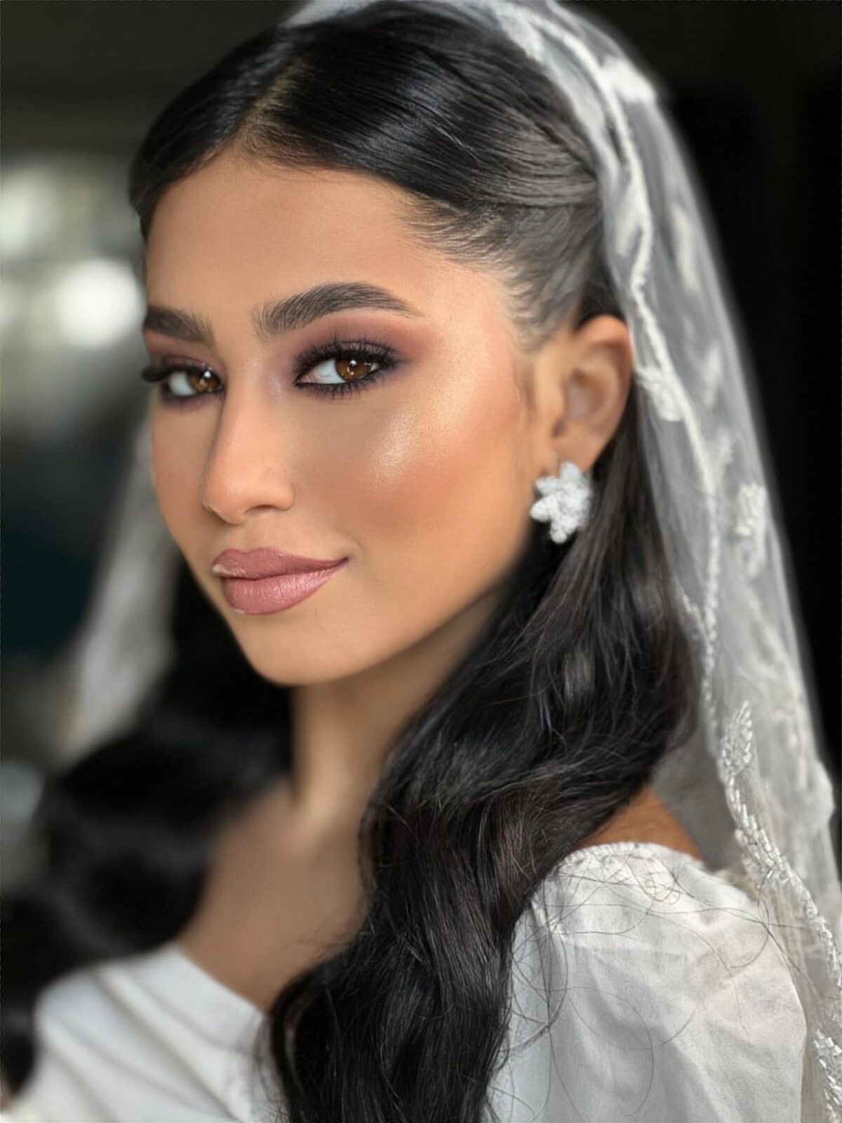 Menna بتركز إن الشعر والطرحة يتنفذوا بشكل يبان أنيق وثابت في الصور والفيديو. وده بيخلي العروسة تفضل راضية عن شكلها وهي بتشوف ذكريات يومها حتى بعد سنين.
