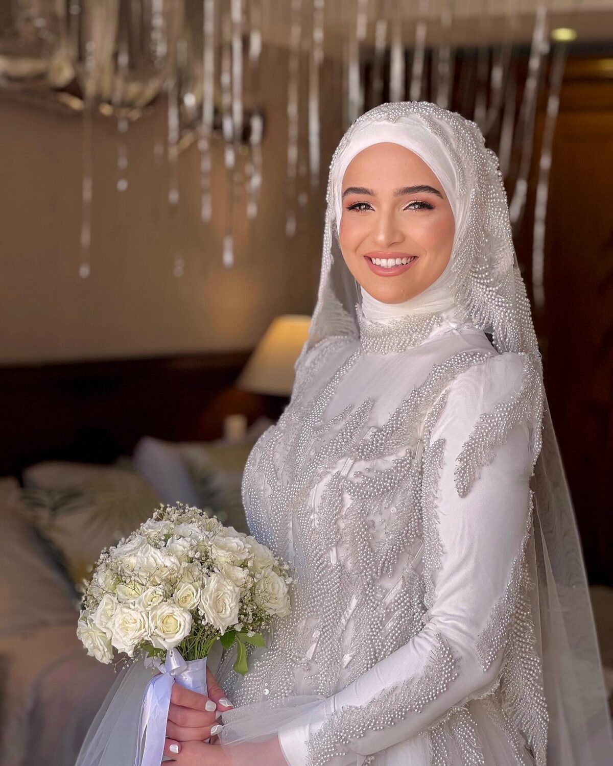 • تصميم طرحة متناسق مع الفستان والتسريحة