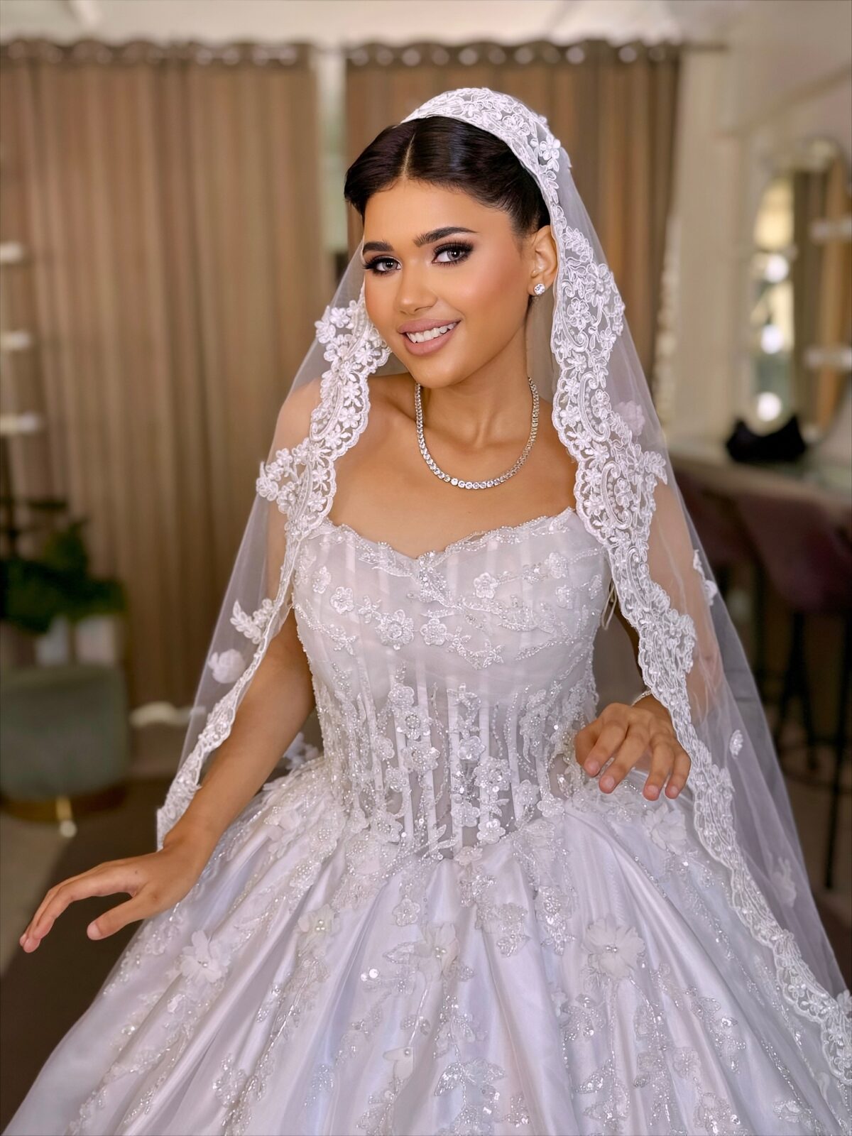 Veil by Menna بتقدملك تجربة متكاملة، لأن الشعر والطرحة بيتعملوا مع بعض من نفس الأيد. وده بيدي نتيجة متناغمة تخليكي واثقة من إطلالتك في يومك الكبير.