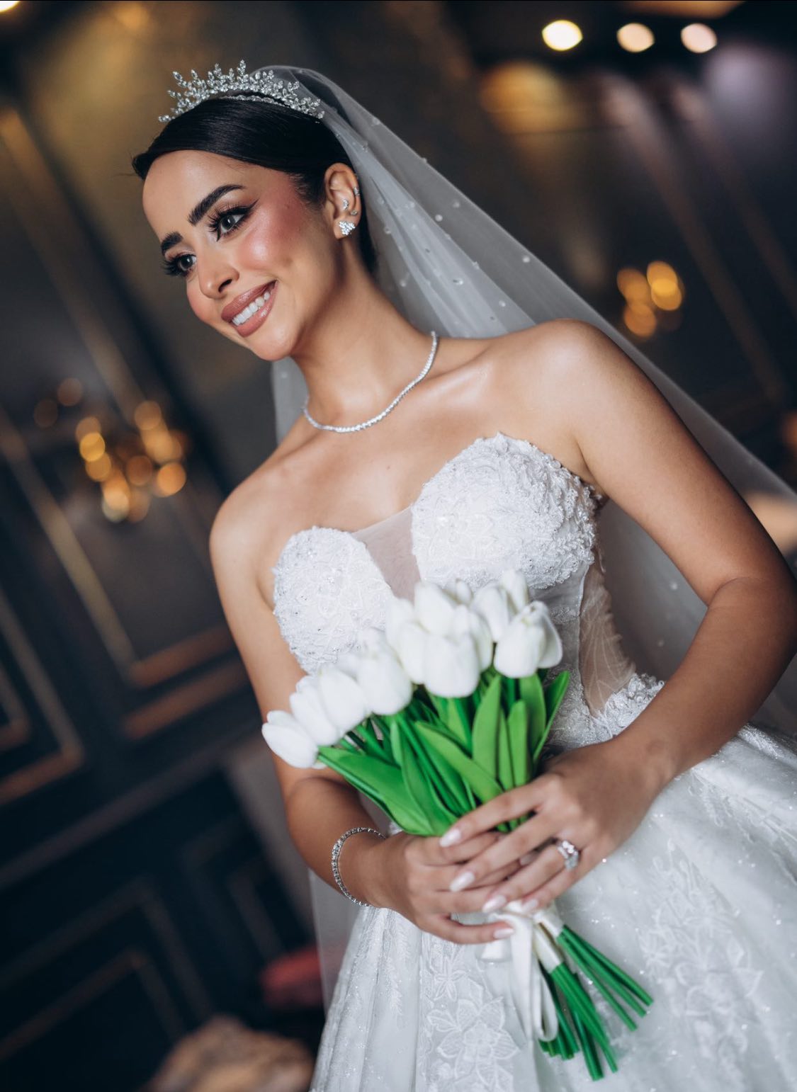 - تيجان خفيفة وشيك مرصعة بالكريستال أو اللؤلؤ.