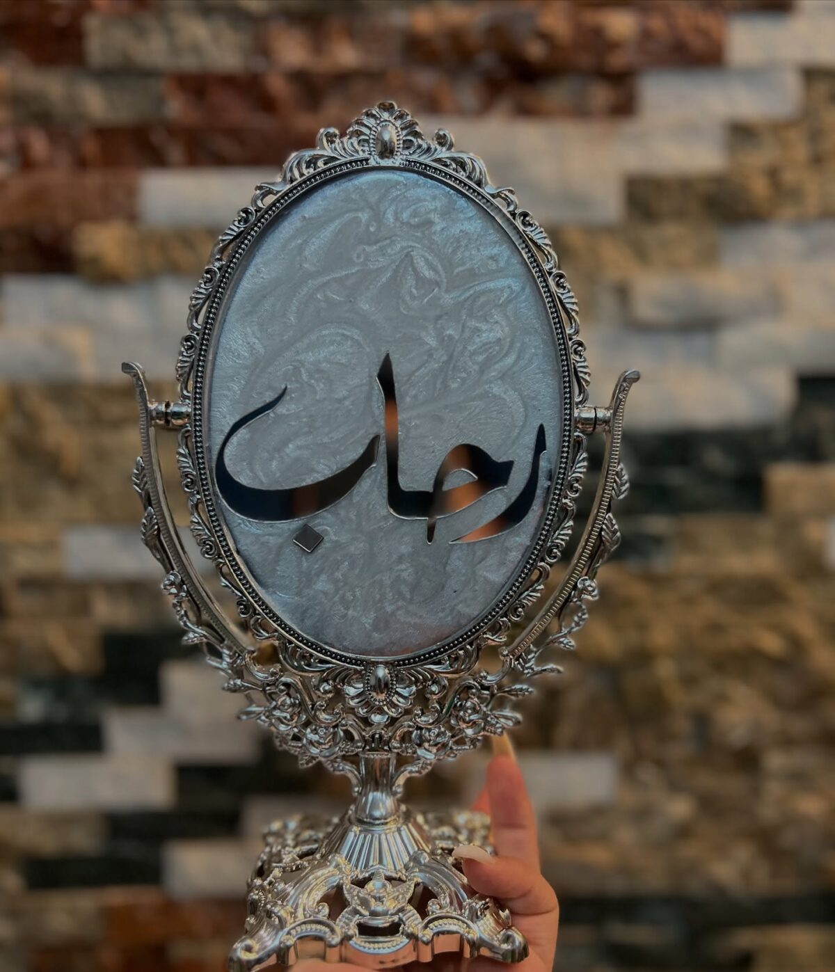 - مرايات محفورة بالليزر عليها اسمك وتاريخك بخط أنيق.