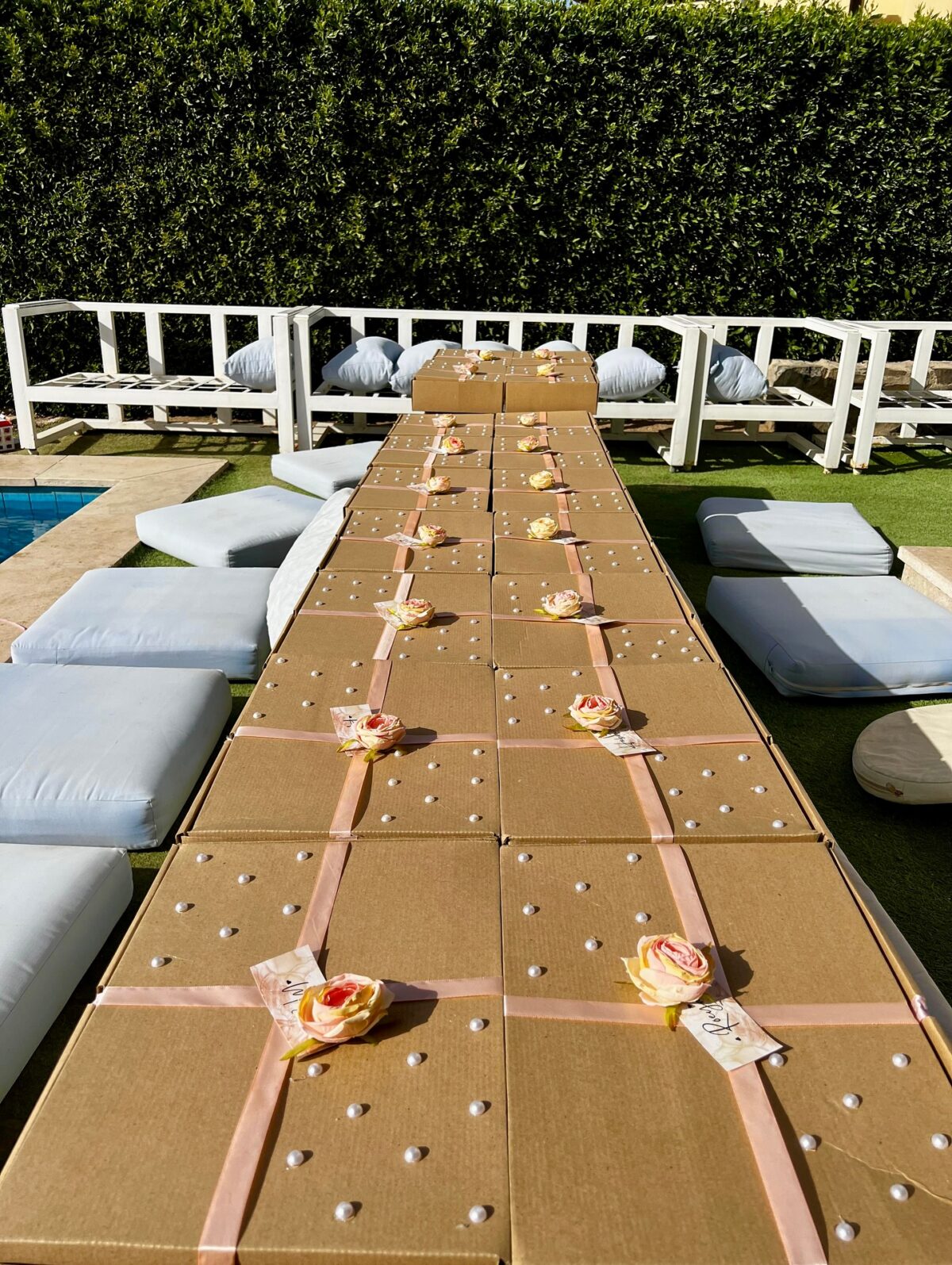 - صواني شبكة من معدن أو أكريليك، مزينة بشرائط وورد صناعي بنفس ثيم البوكيه.