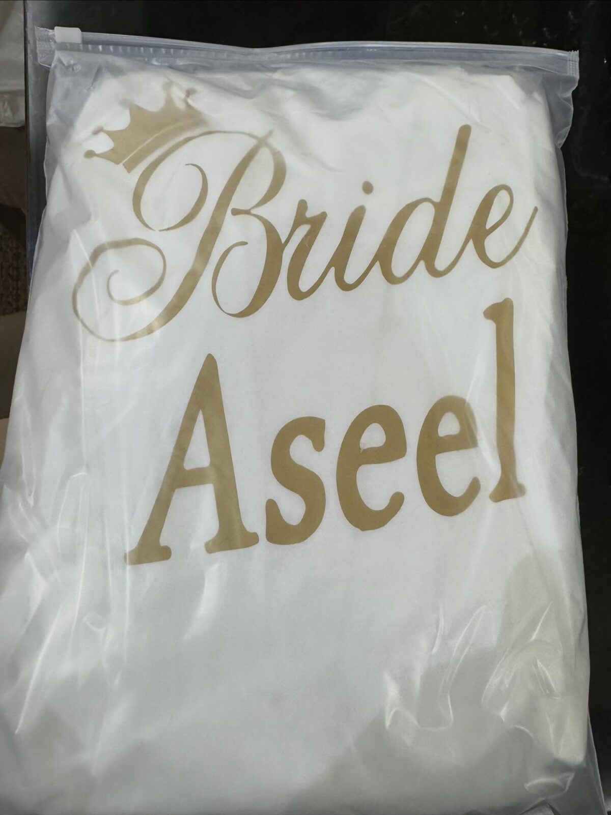 - دبابيس العروسة مكتوب عليها اسمك أو كلمة "عروسة".