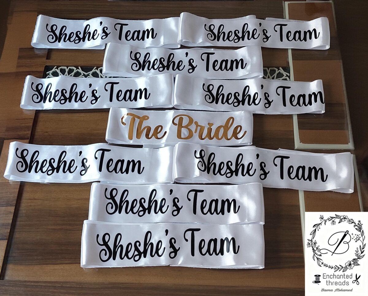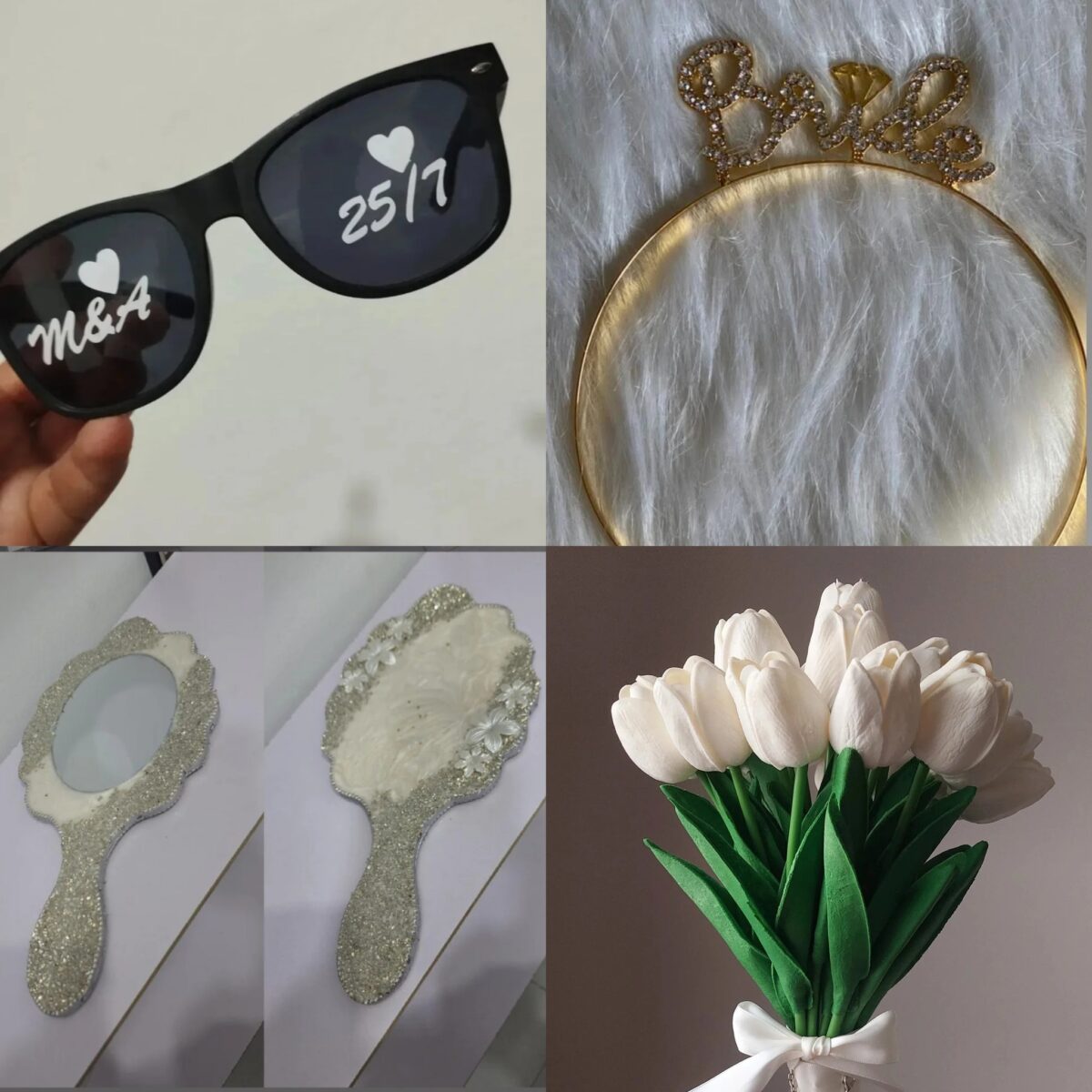 - دبابيس عروسة مكتوب عليها اسمك أو كلمة “عروسة”.