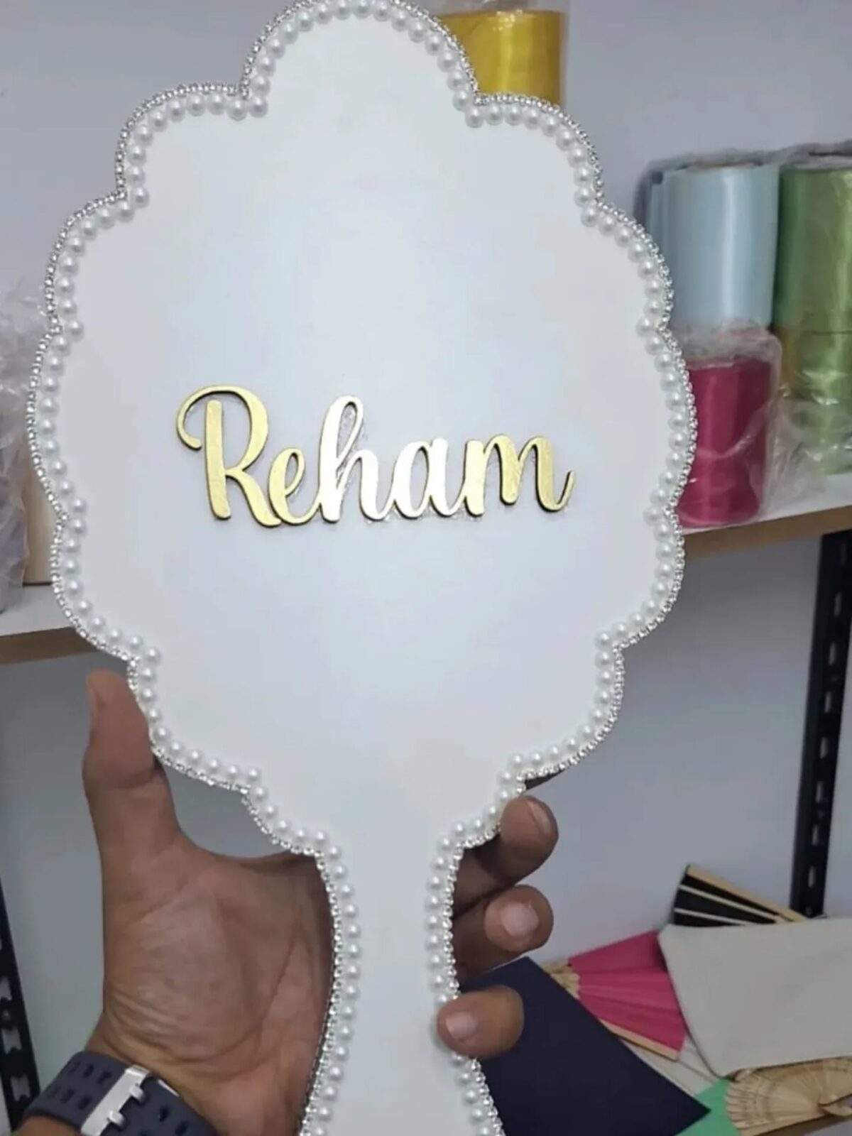 - مرايات محفورة بالليزر عليها اسمك وتاريخك بخط أنيق.