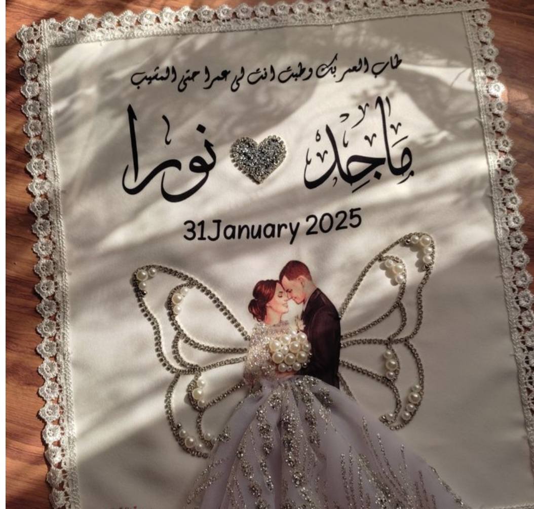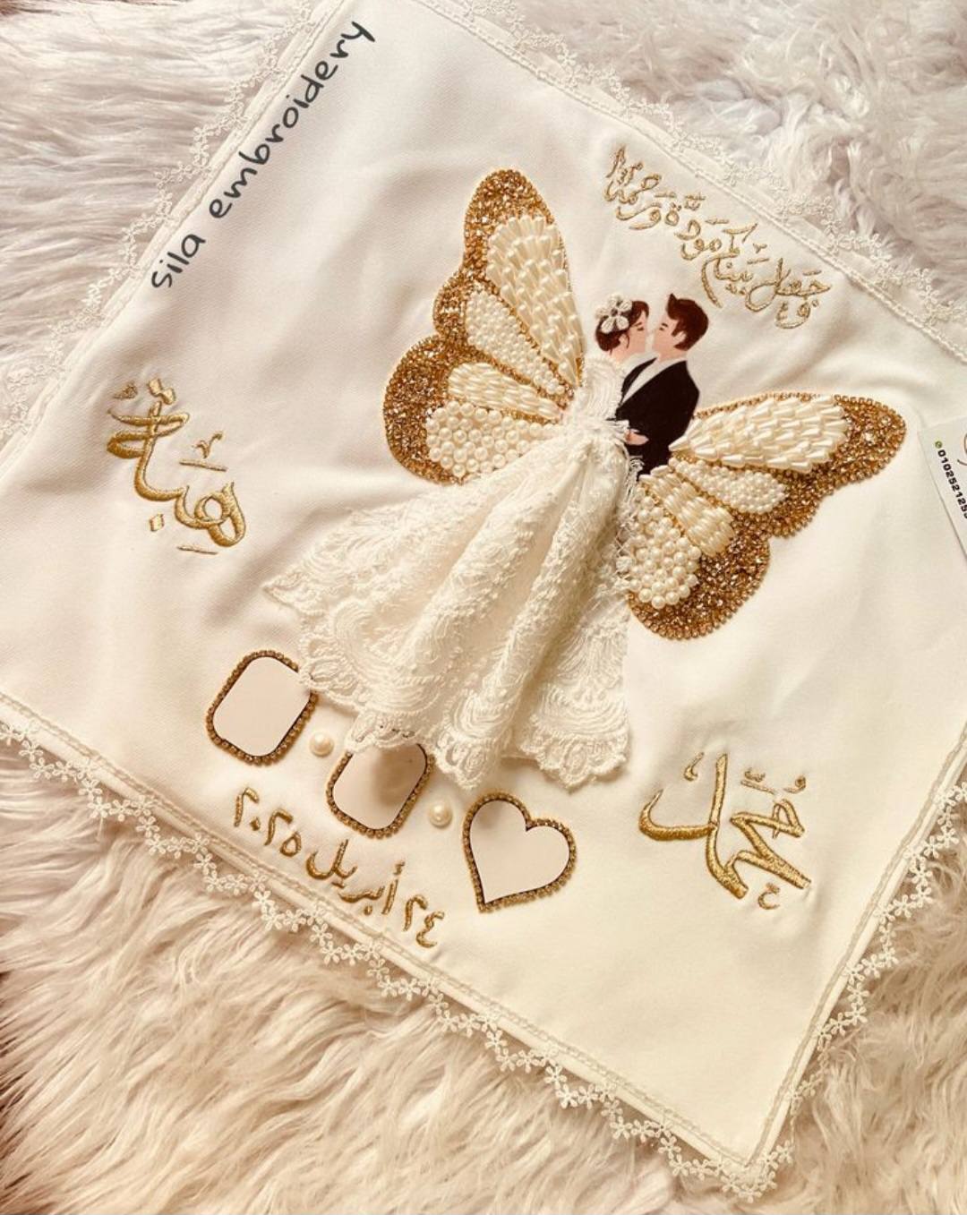 - دبابيس العروسة مكتوب عليها اسمك أو كلمة "عروسة".
