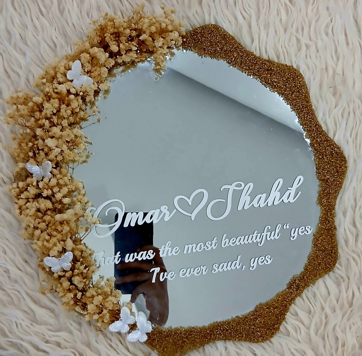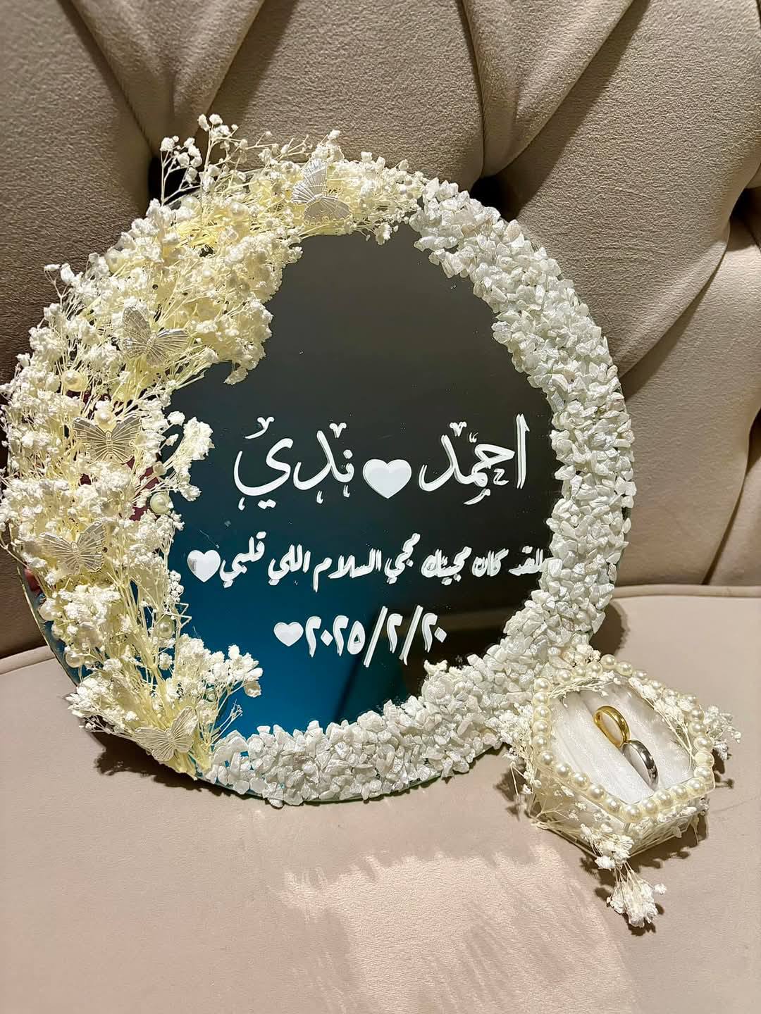 - مرايات محفورة بالليزر عليها اسمك وتاريخك بخط أنيق.