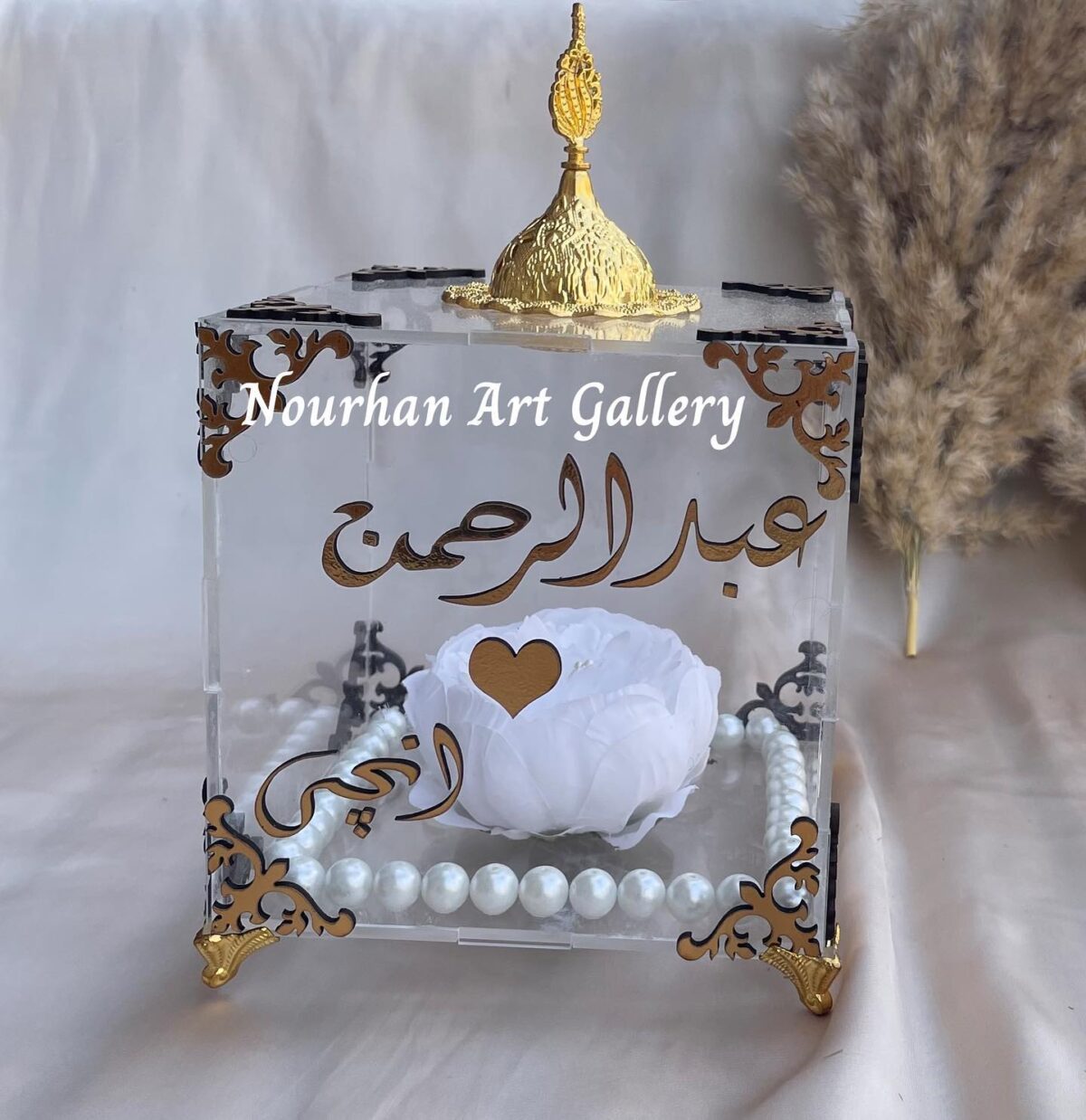 - محفور عليها اسمك وتاريخ كتب الكتاب بالليزر.