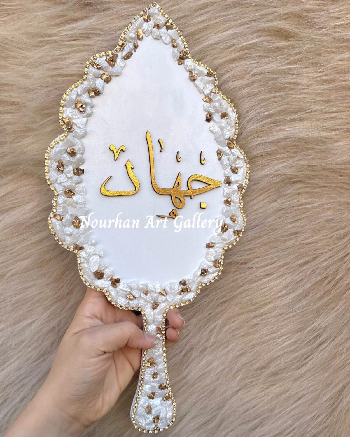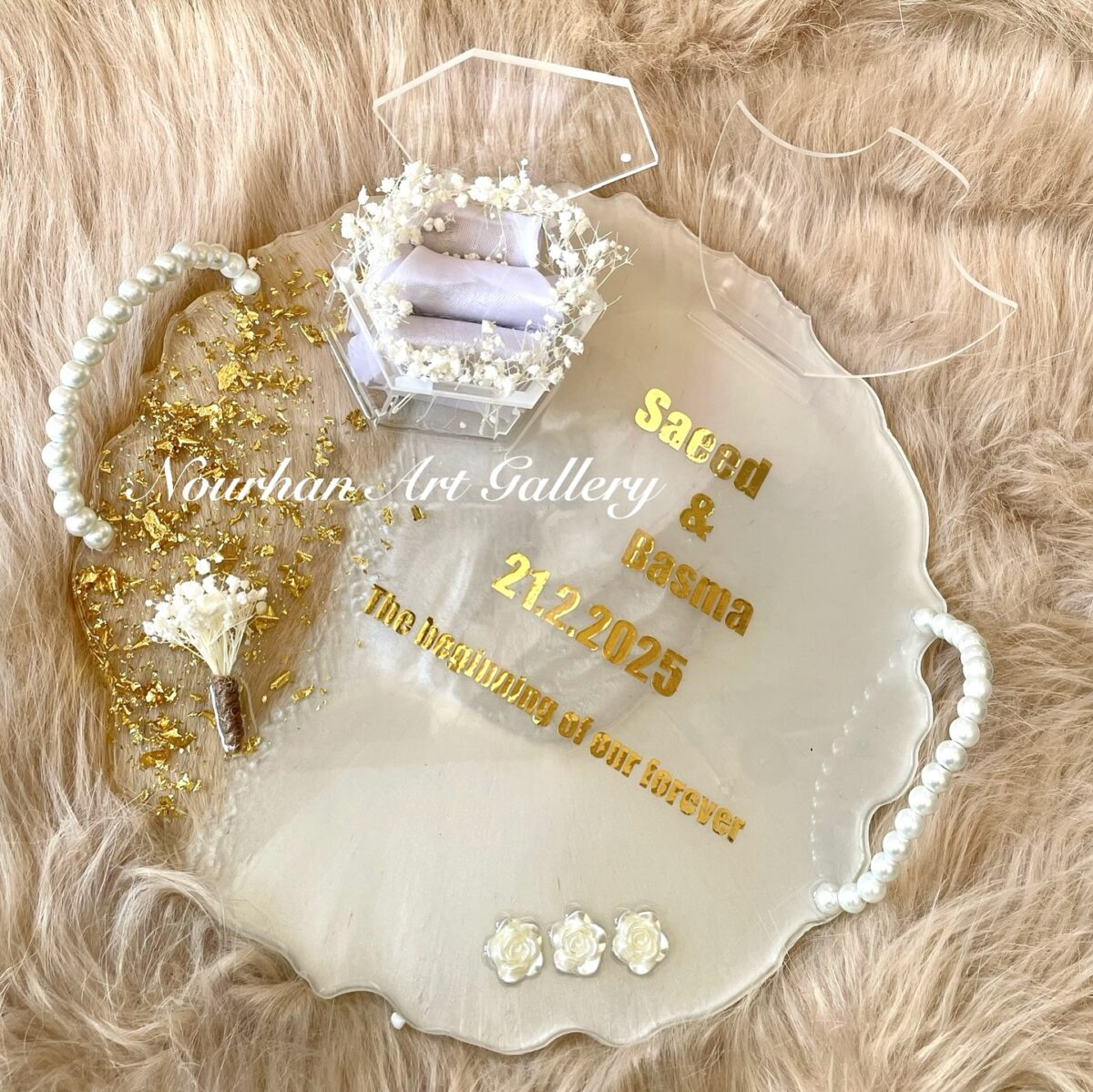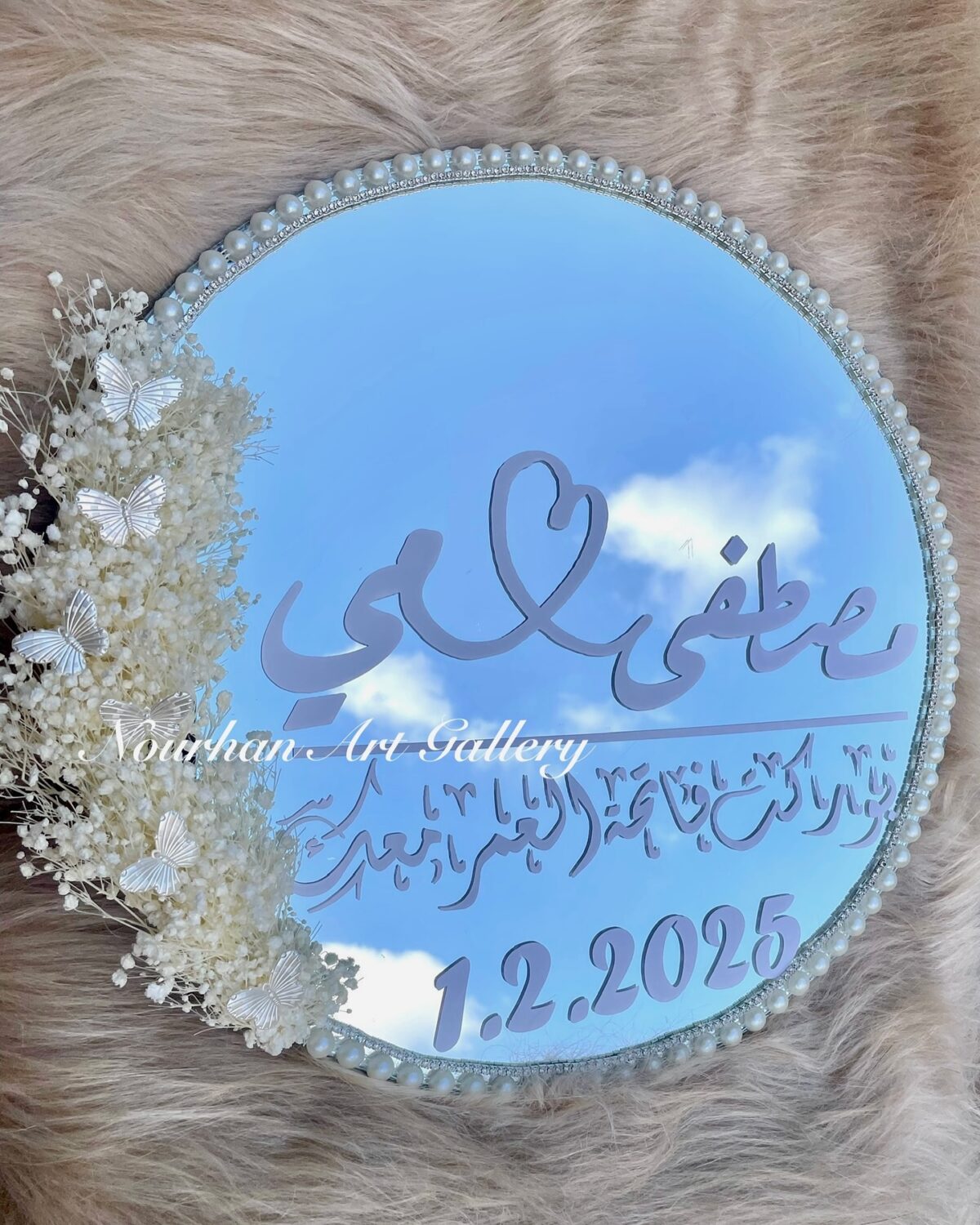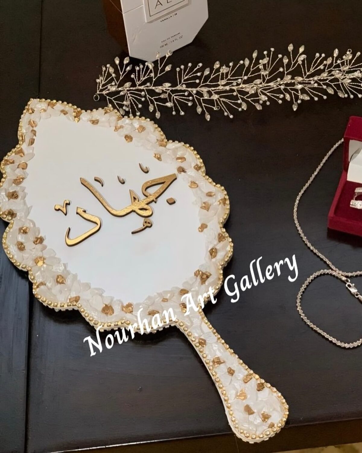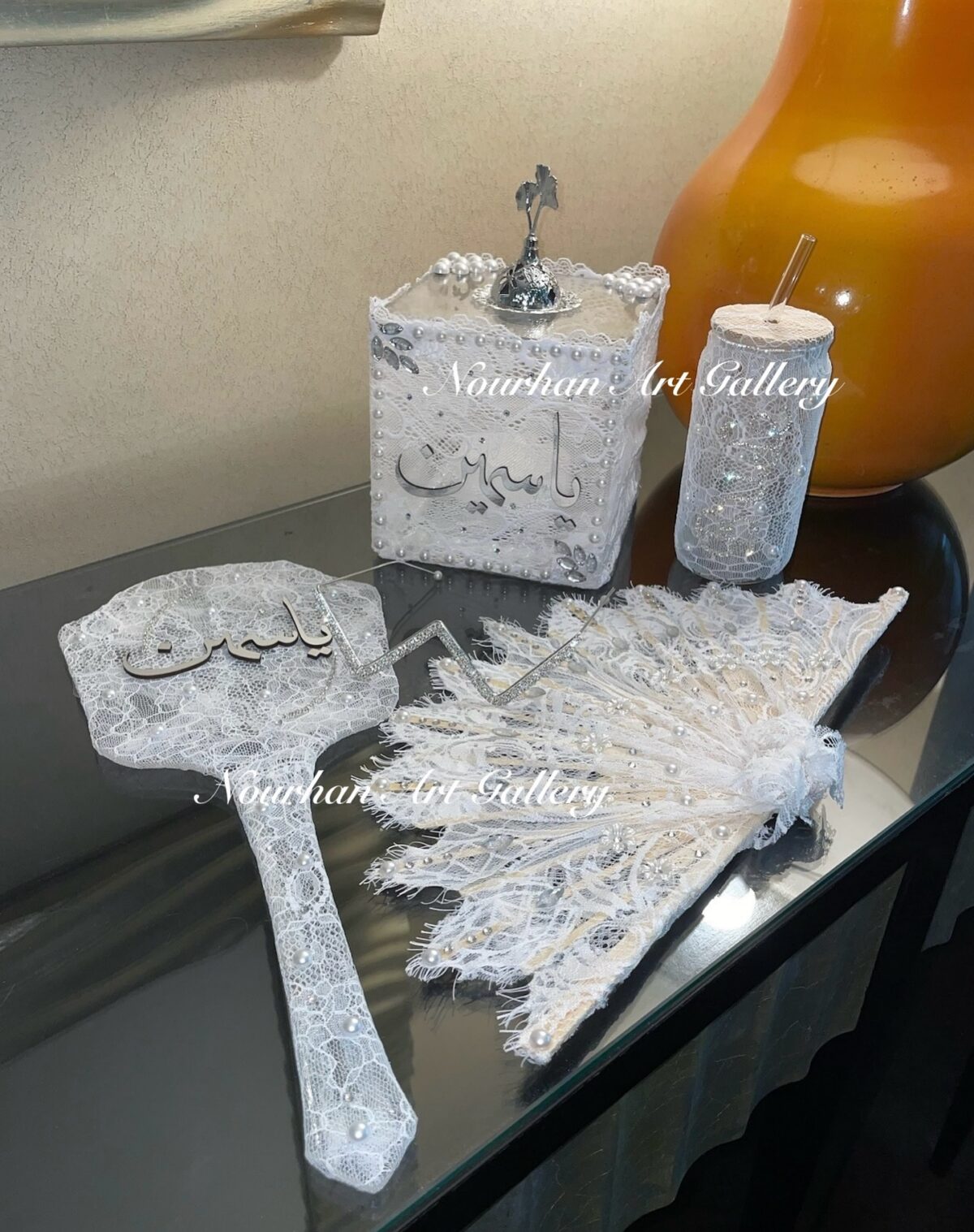 - طقم كامل متناسق: مراية + صينية + دبوس + هدايا صغيرة.