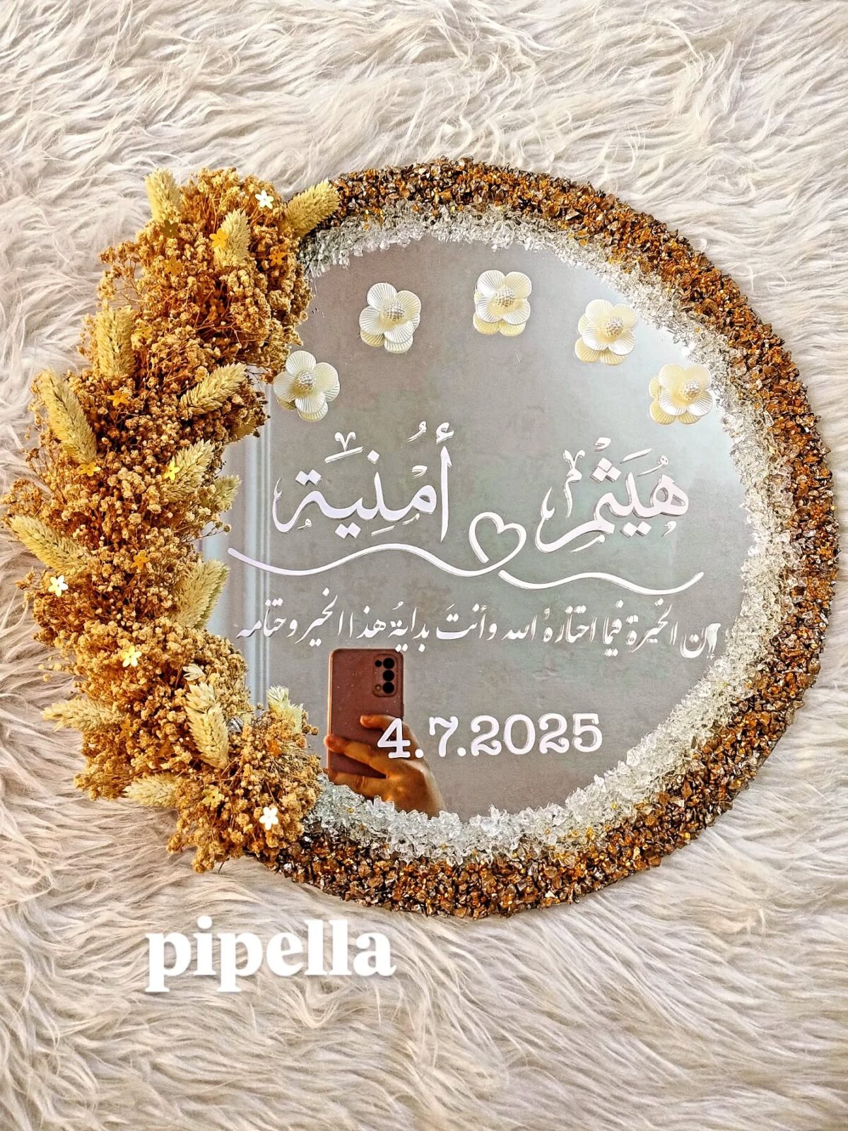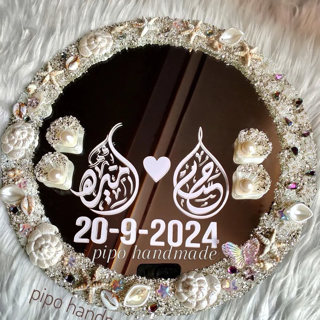 - مرايات محفورة بالليزر عليها اسمك وتاريخك، بأشكال مختلفة شيك.