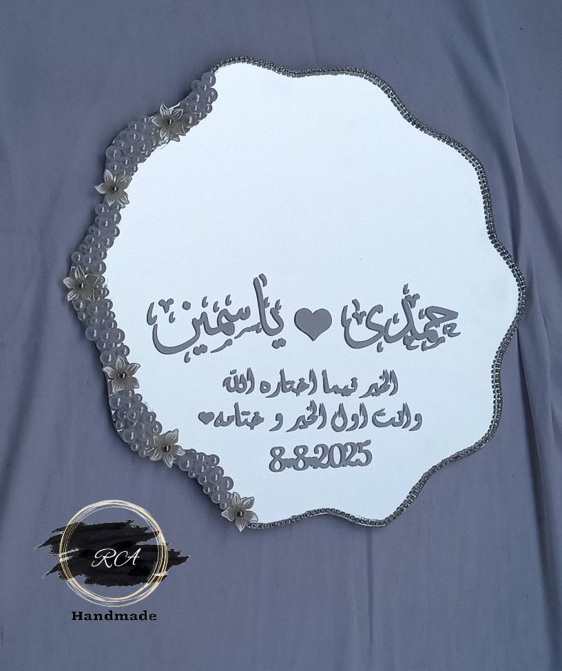 - مرايات handmade محفور عليها اسمك وتاريخك بالليزر ومزيّنة بلمسات ورد أو شرائط.