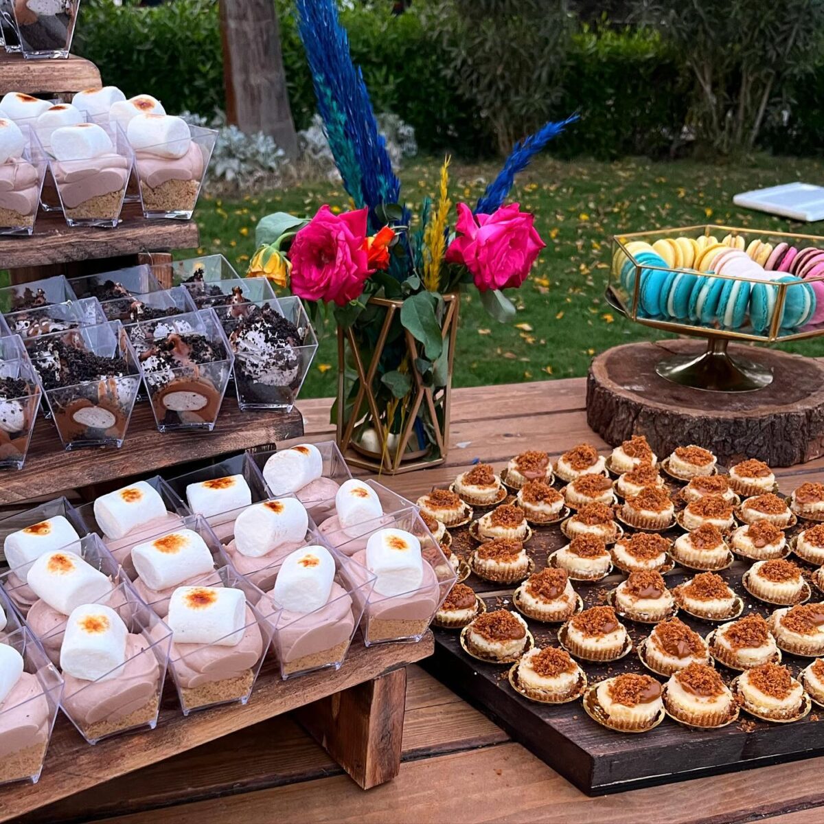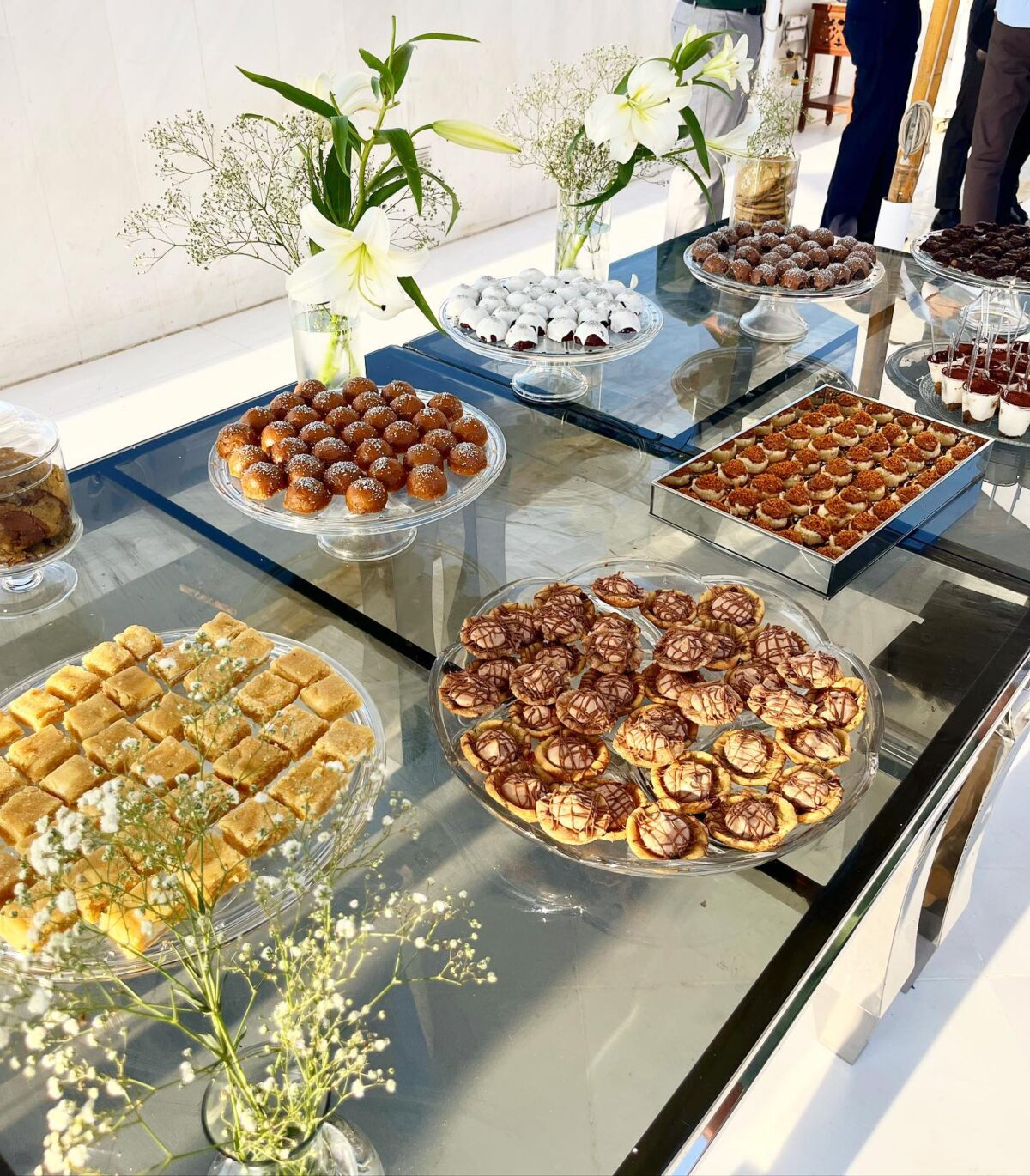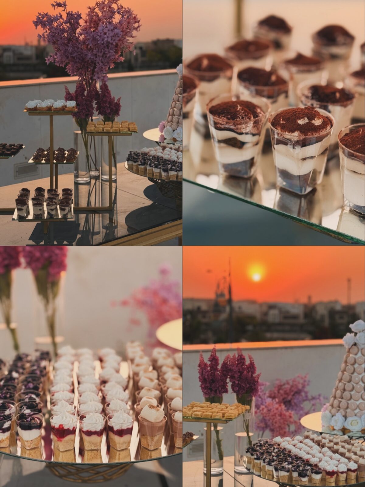 كمان بيقدموا تشكيلة من الميني تارت والتشيز كيك، ودي حاجات بتدي تنوع يخلي كل ضيف يلاقي حاجة على ذوقه. الألوان والأشكال متناسقة، والطعم ثابت مهما كان عدد القطع.