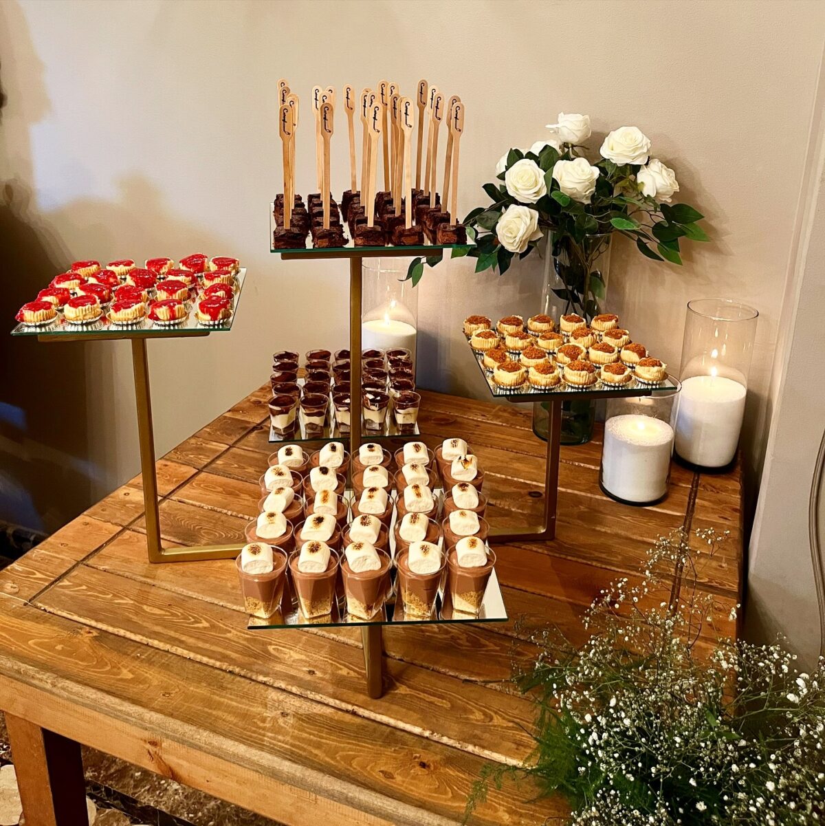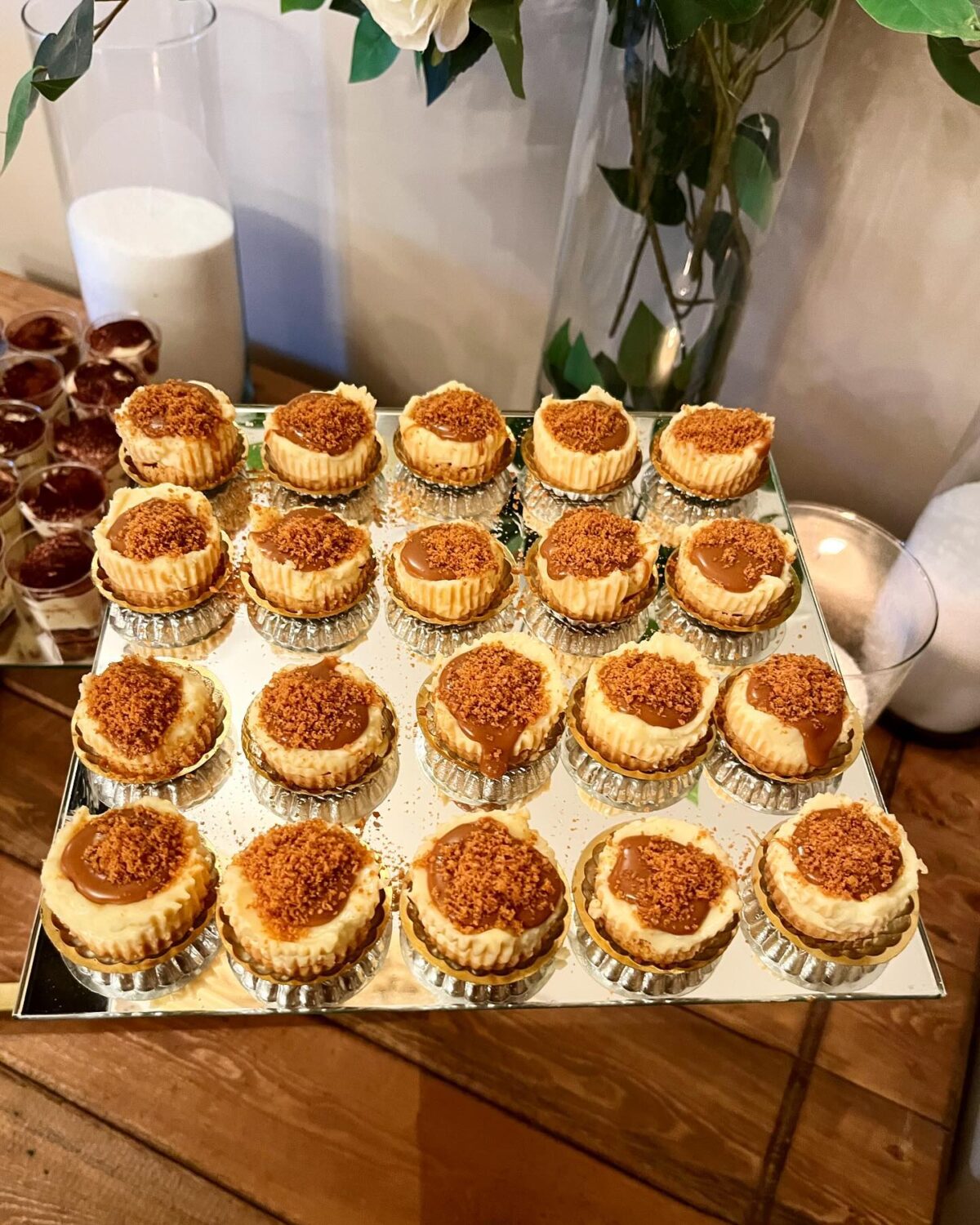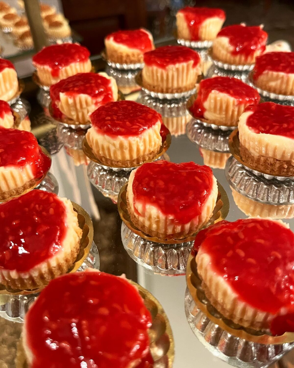 كمان بيقدموا تشكيلة من الميني تارت والتشيز كيك، ودي حاجات بتدي تنوع يخلي كل ضيف يلاقي حاجة على ذوقه. الألوان والأشكال متناسقة، والطعم ثابت مهما كان عدد القطع.