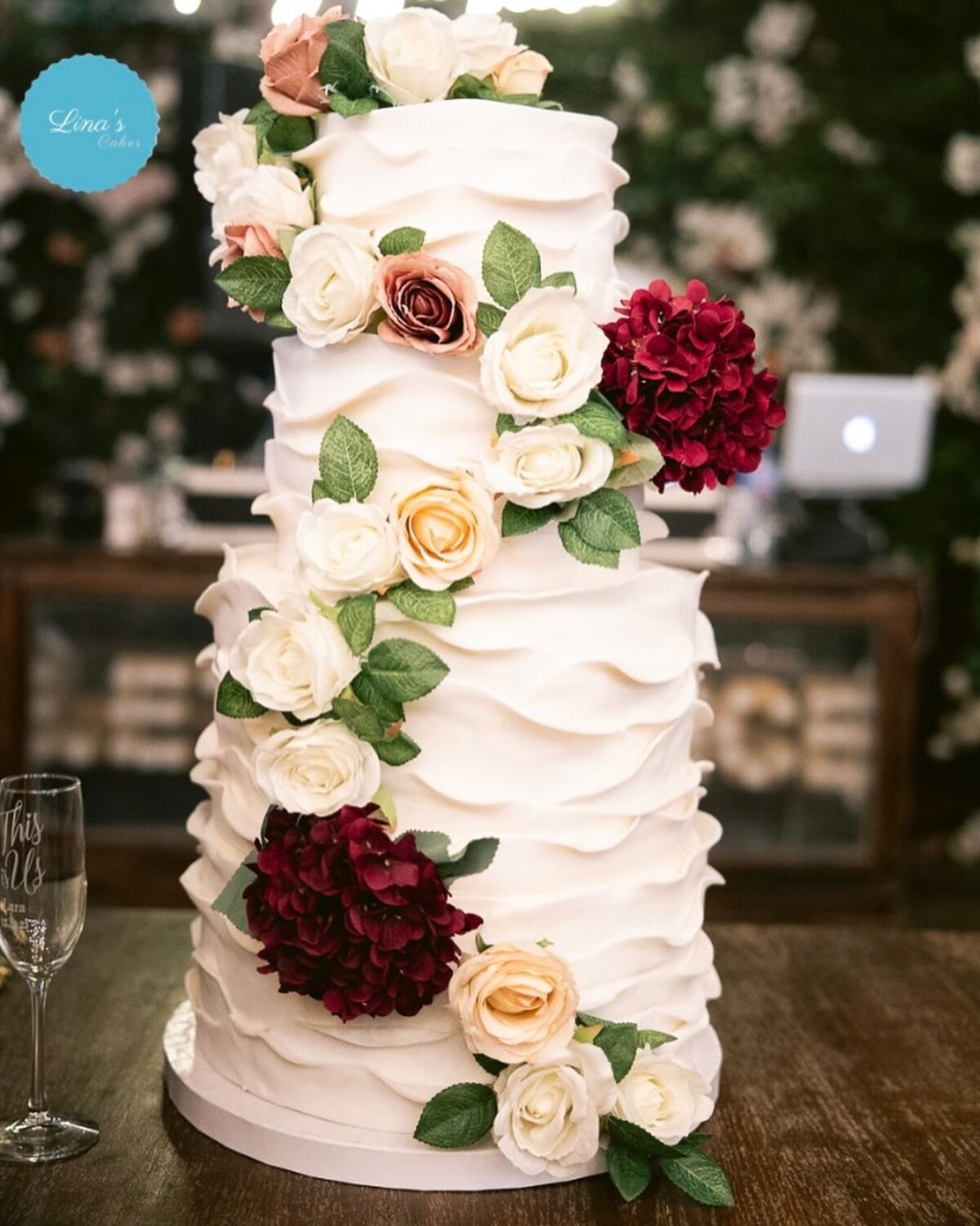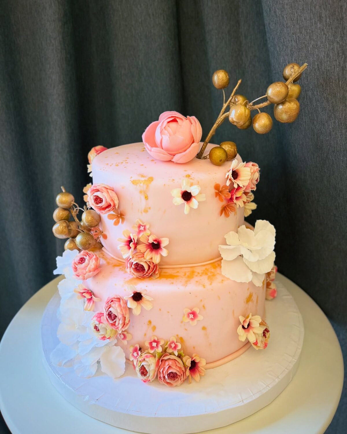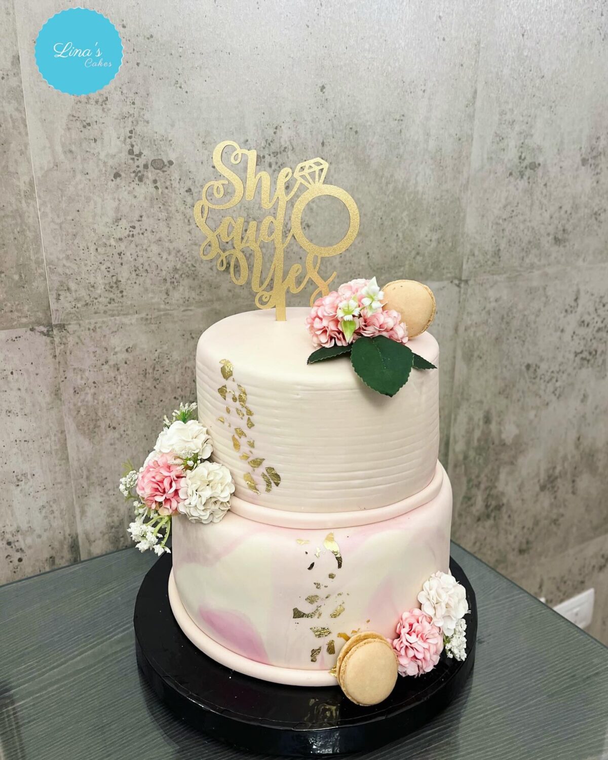 التورتات عند Lina’s Cakes معمولة بعناية وبتصميمات بتخطف العين. تقدر تختار ما بين التورتات الكلاسيكية اللي فيها أدوار متعددة ولمسات بسيطة وأنيقة، أو التورتات المودرن اللي فيها ألوان جريئة وأفكار غير تقليدية. كل تورتة بتتعمل مخصوص حسب فكرة الفرح وذوق العريس والعروسة، وبتتحول لقطعة ديكور فخمة في النص.
