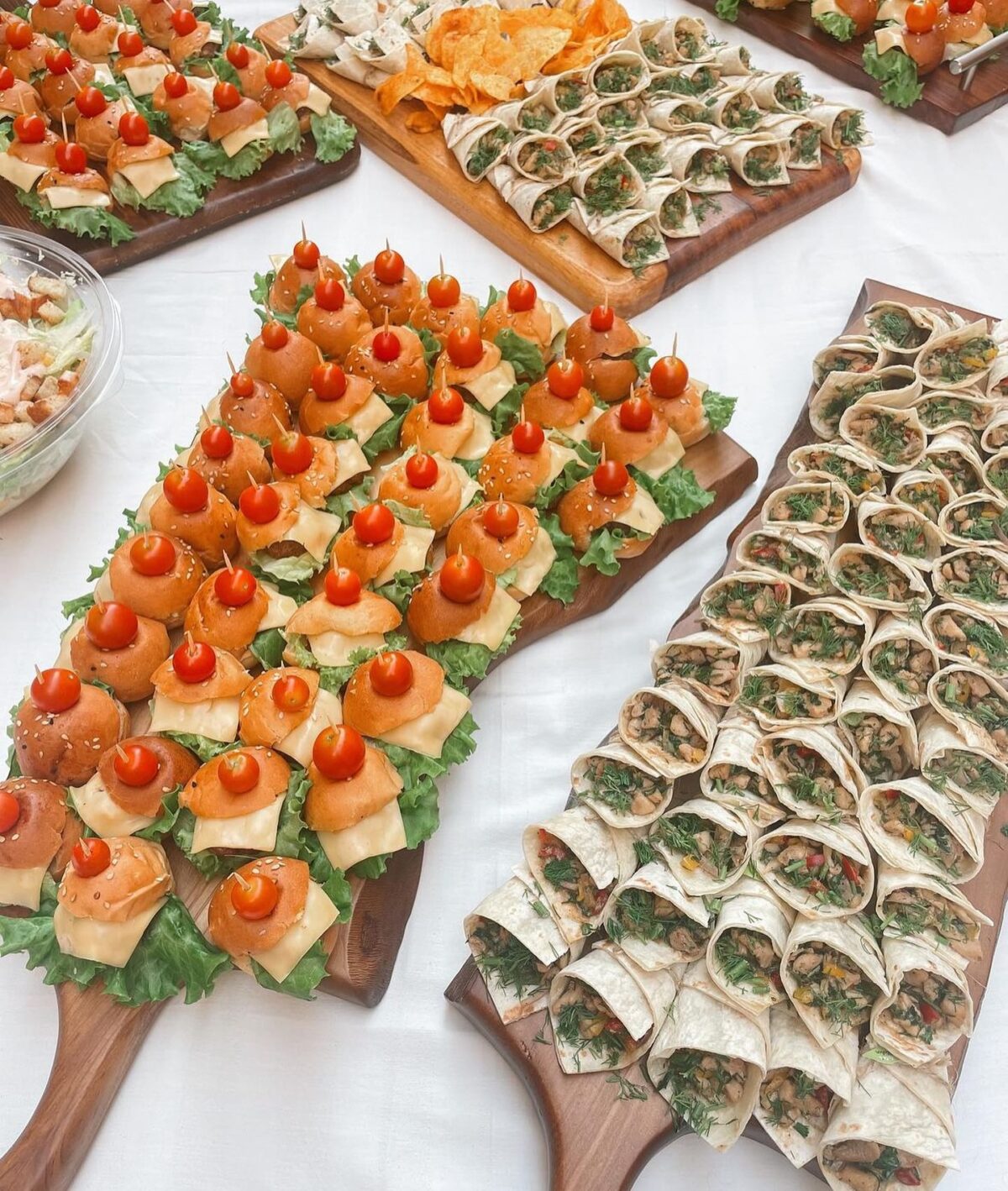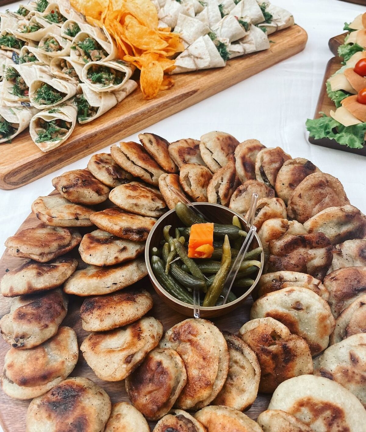 البوفيه بيتقدم عندهم بشكل أنيق ومنظم جدًا. الأطباق متوزعة بطريقة تخلي الحركة سهلة للضيوف، والألوان متناسقة مع بعض. أدوات التقديم مختارة بعناية علشان تضيف لمسة فخامة، وكل طبق متعرض بأسلوب يخلي شكله شيك وجذاب.