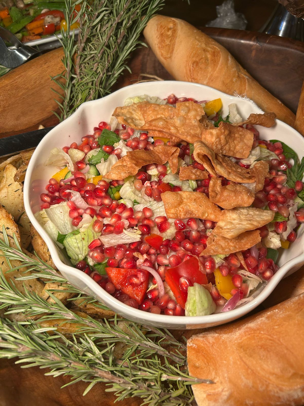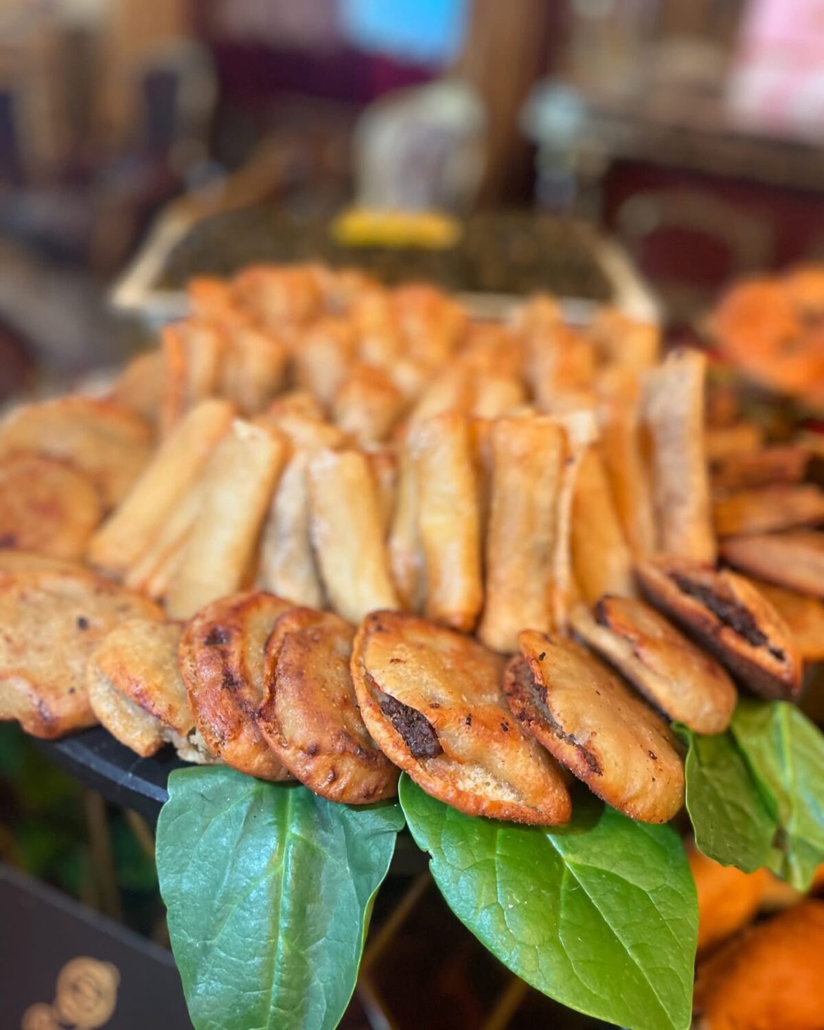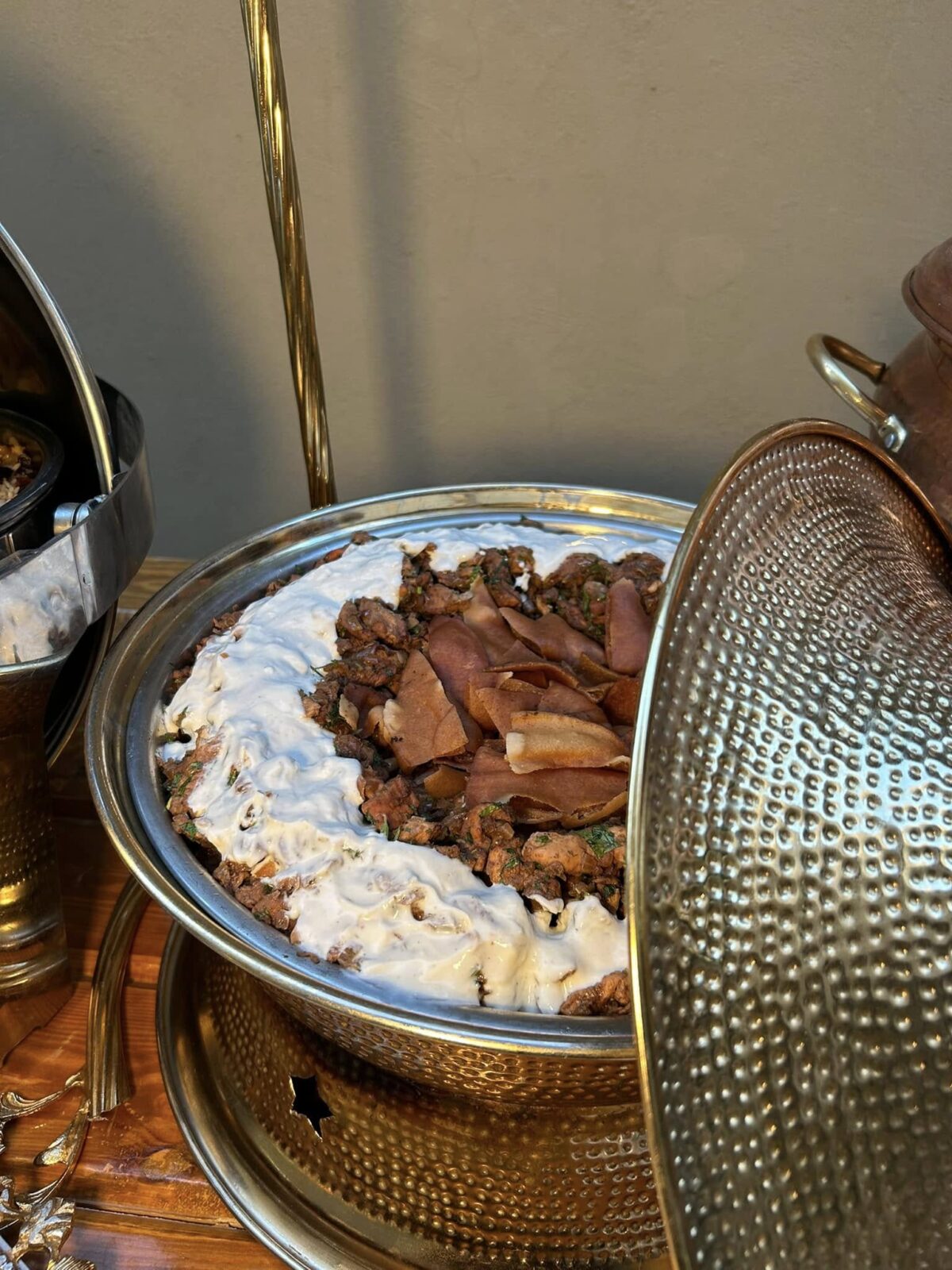 البوفيه بيتعرض بشكل أنيق ومنظم جدًا. الطاولات متقسمة بطريقة مريحة، وكل صنف متقدم بشكل شيك يخلي الضيوف يستمتعوا من أول نظرة. أدوات التقديم متختارة بذوق، والألوان متناسقة مع ديكور الفرح. حتى المقبلات الصغيرة بتتقدّم بطريقة تخلي شكل البوفيه جزء من ديكور القاعة.