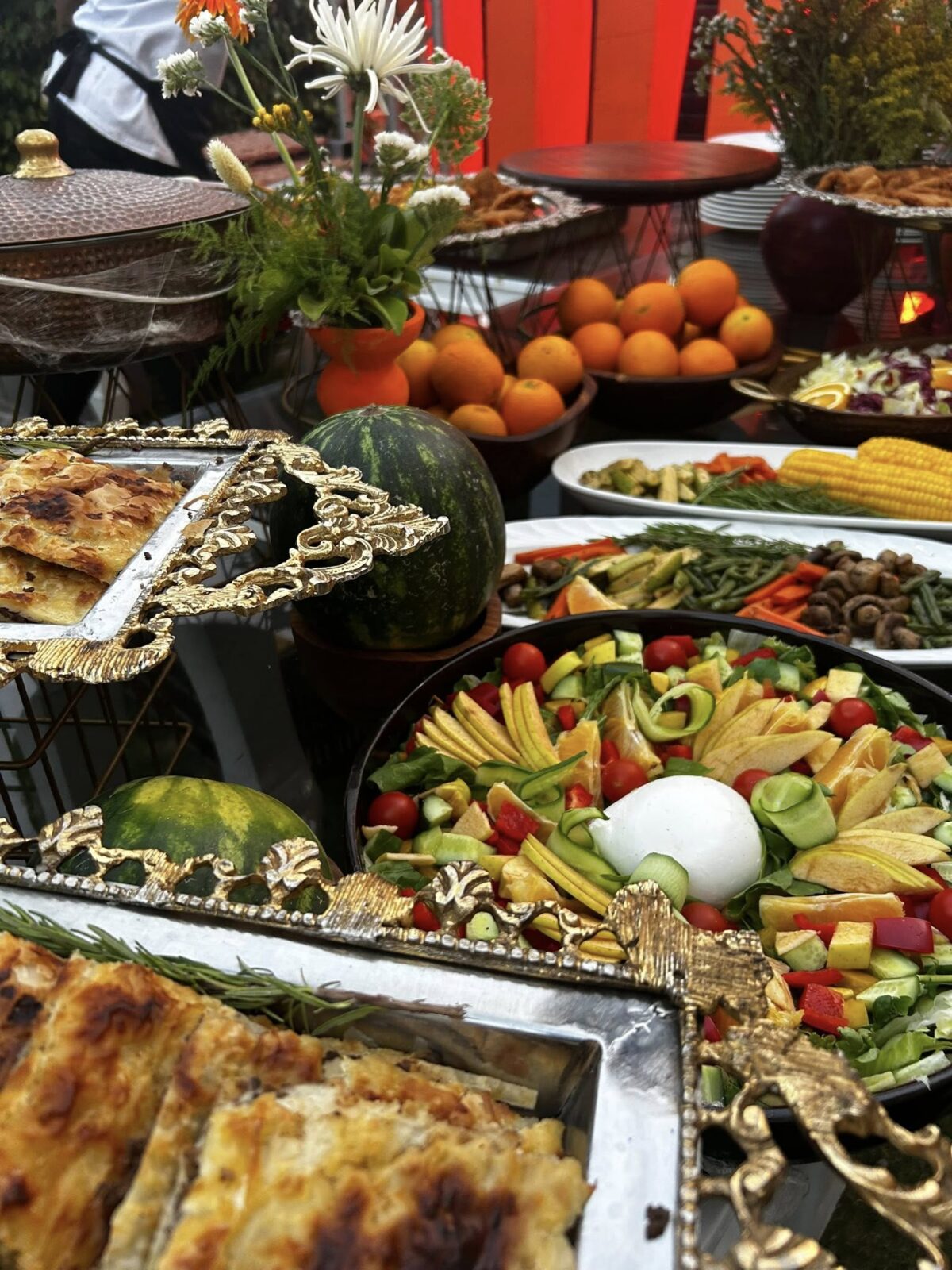 الميزة في Made with love by Raghda إنهم مش بيركزوا على الأكل بس، لكن على التجربة ككل. ممكن يضيفوا ركن لايف كوكينج يخلي الشيف يجهز الأكل قدام الضيوف سواء جريل أو باستا. اللحظة دي بتخلي الضيوف يتفاعلوا ويحسوا إن البوفيه جزء من أجواء الحفل مش مجرد ركن جانبي.