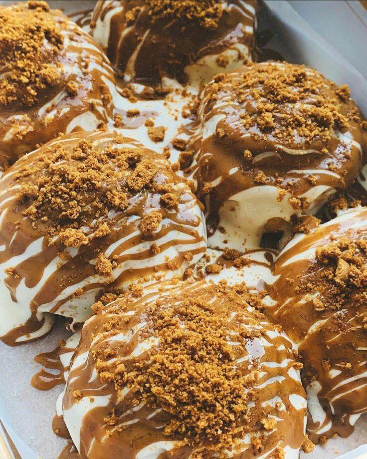 السينابون عندهم من أكتر الحاجات اللي بتشد الضيوف، معمول بعجينة طرية وملفوفة بحشوات متوازنة، ومعاه صوص لذيذ يخلي الطعم unforgettable. أما الدوناتس، فهي معمولة بألوان وتزيين يخليها شكلها يفتح النفس، سواء بالسكر البودر أو بالشيكولاتة والجليز اللامع.