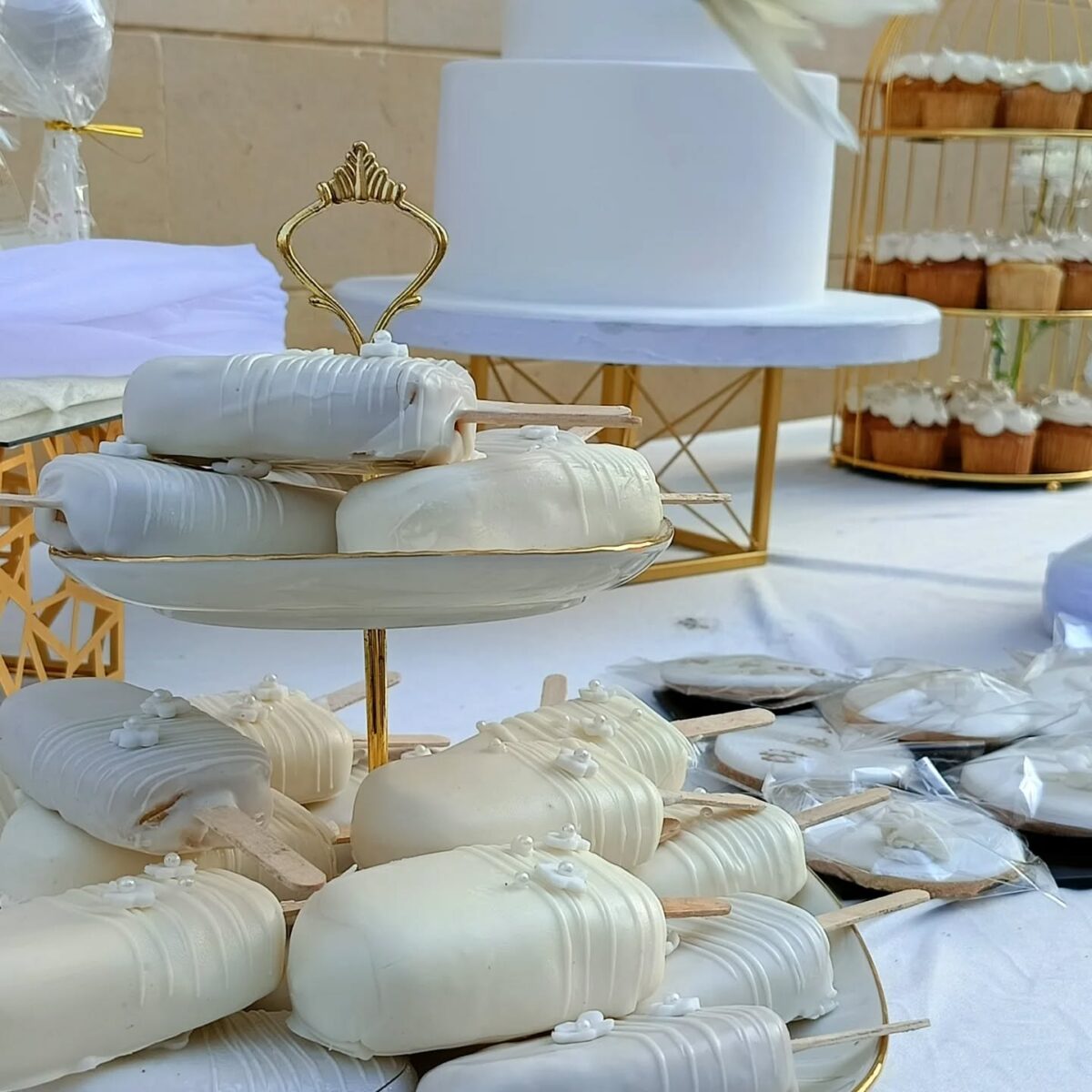 كمان Sweet Sugar بيقدّموا ركن حلويات ميني يكمل التورتة. زي الكب كيك المتزوق، الميني تارت، البراونيز، والتشيز كيك. كل صنف معمول بعناية وبيترتب بشكل يخلي البوفيه شكله متكامل وشيك.