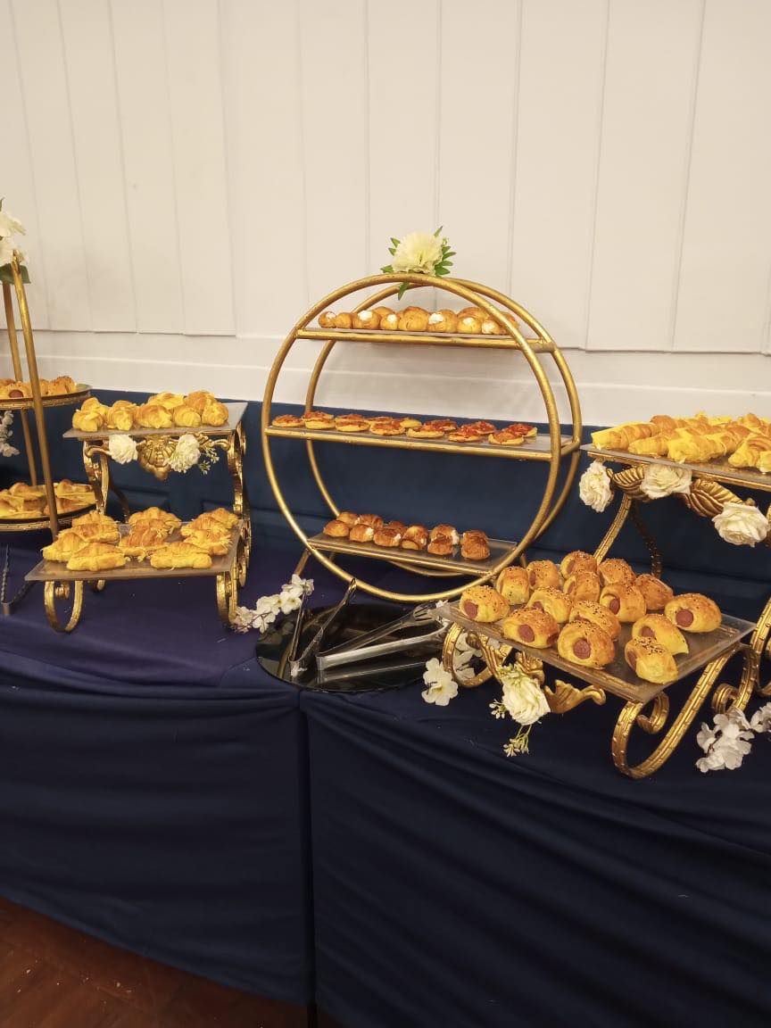 البوفيه بيتقدم عندهم بشكل منظم جدًا. الأطباق متوزعة بطريقة تخلي الضيوف يتحركوا بسهولة، والألوان متناسقة مع بعض. حتى أدوات التقديم مختارة بعناية، علشان الركن كله يكون شكله أنيق ويمشي مع ديكور الفرح.