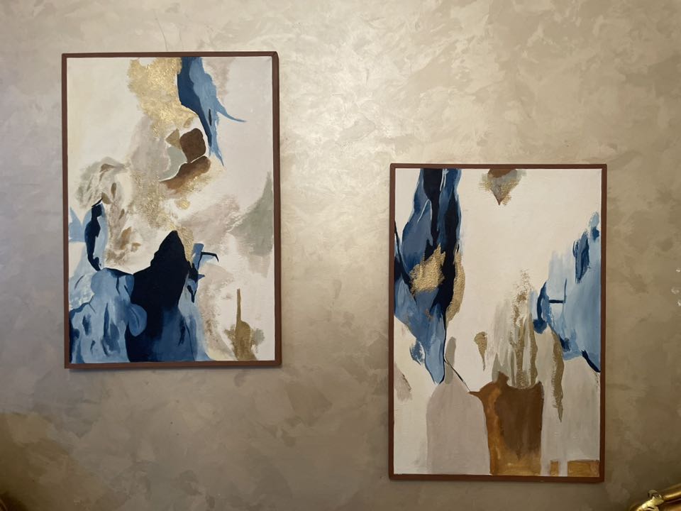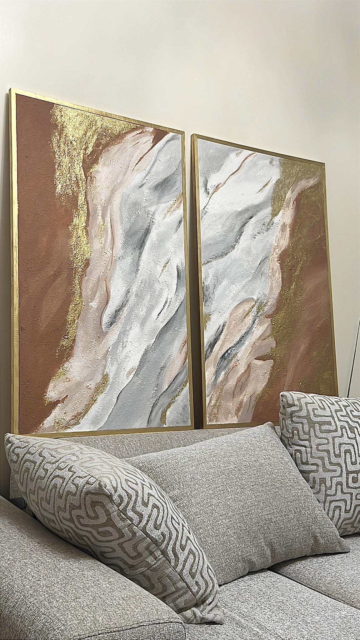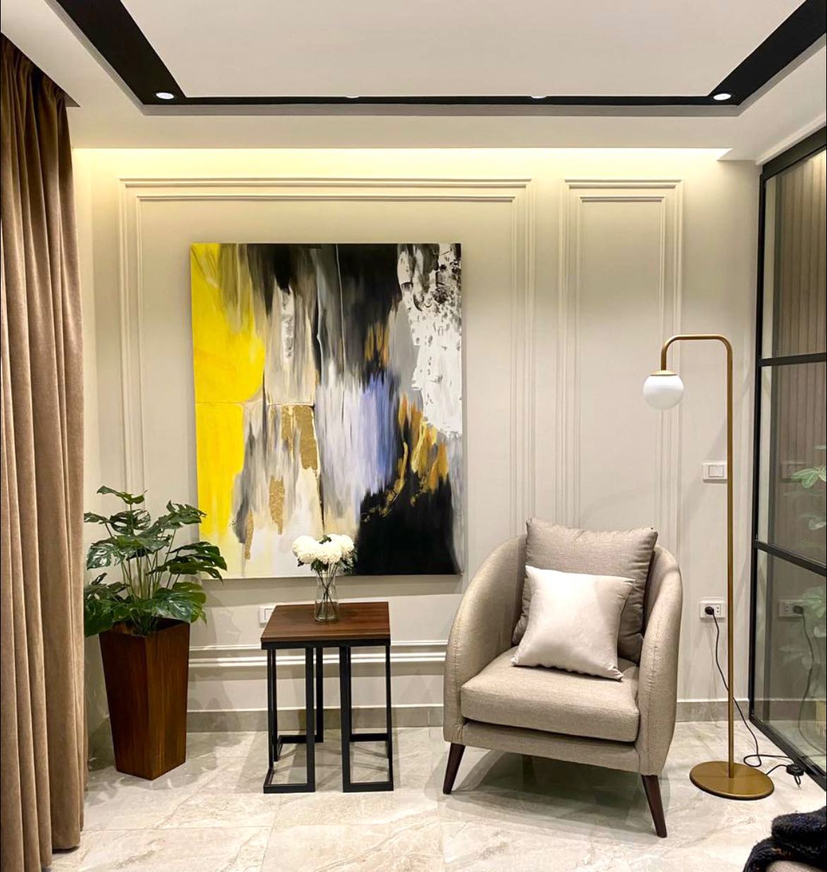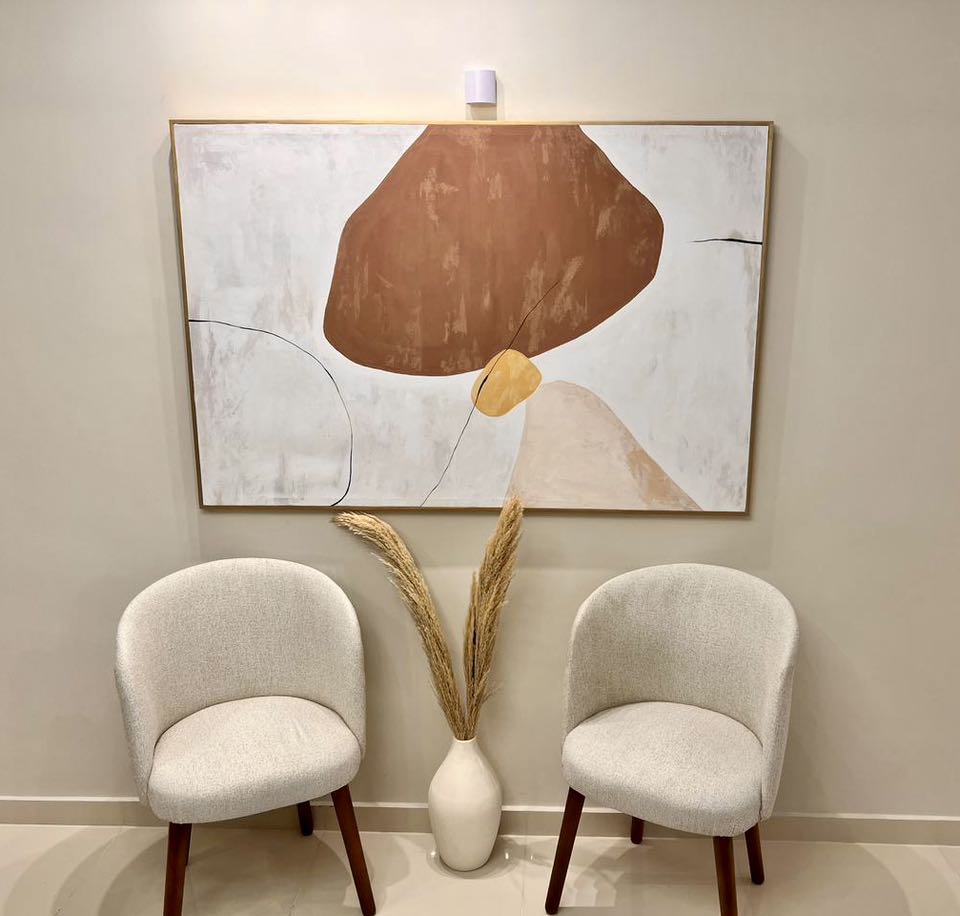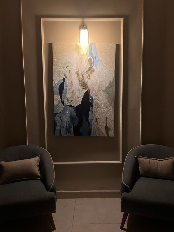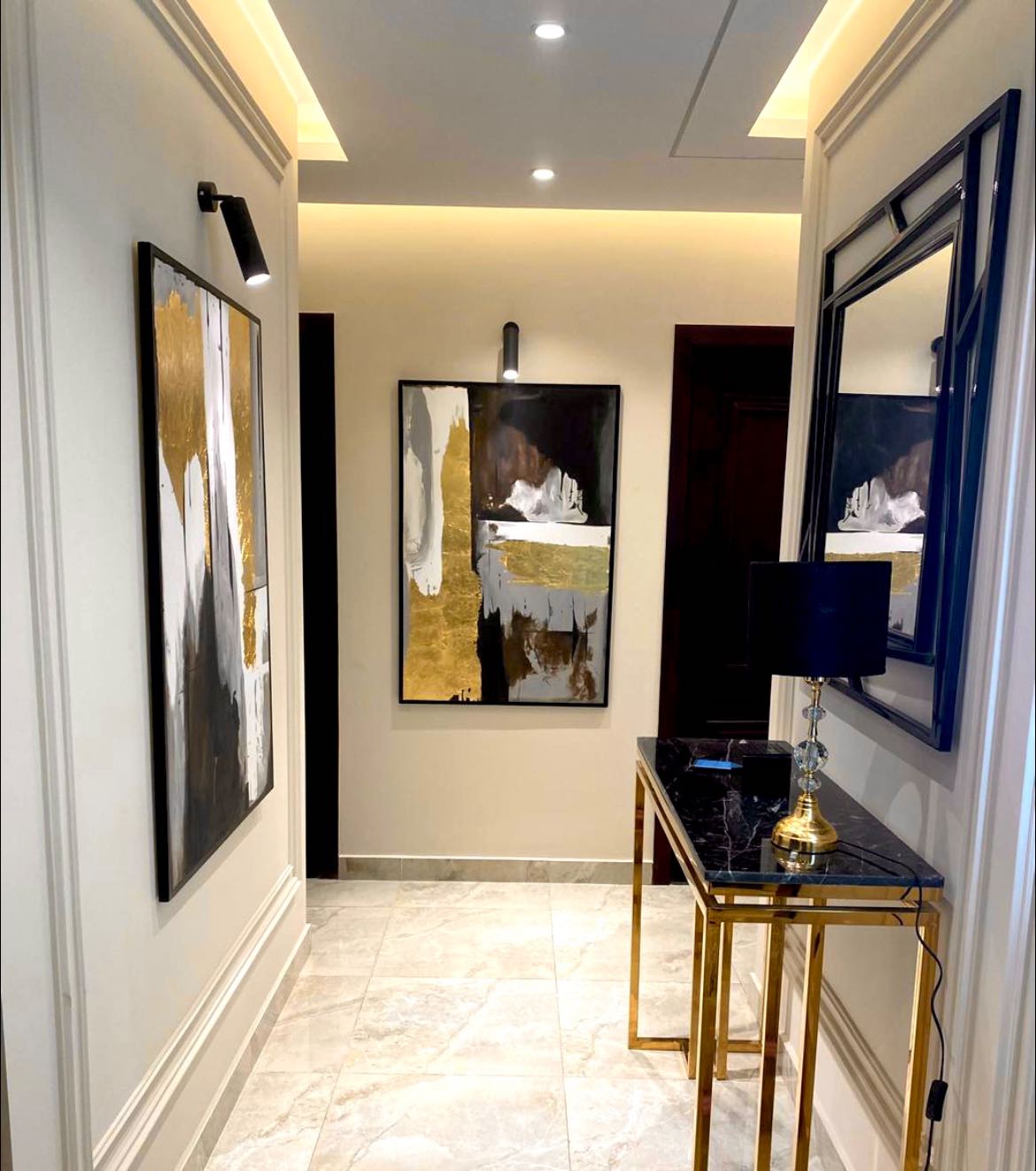 اللوحات عندهم مش بس ديكور، لكنها كمان استثمار في قطعة فنية، لأن كل لوحة بتتحول لعنصر أساسي في الديزاين الداخلي وتدي للمكان طابع فخم وشخصي جدًا.