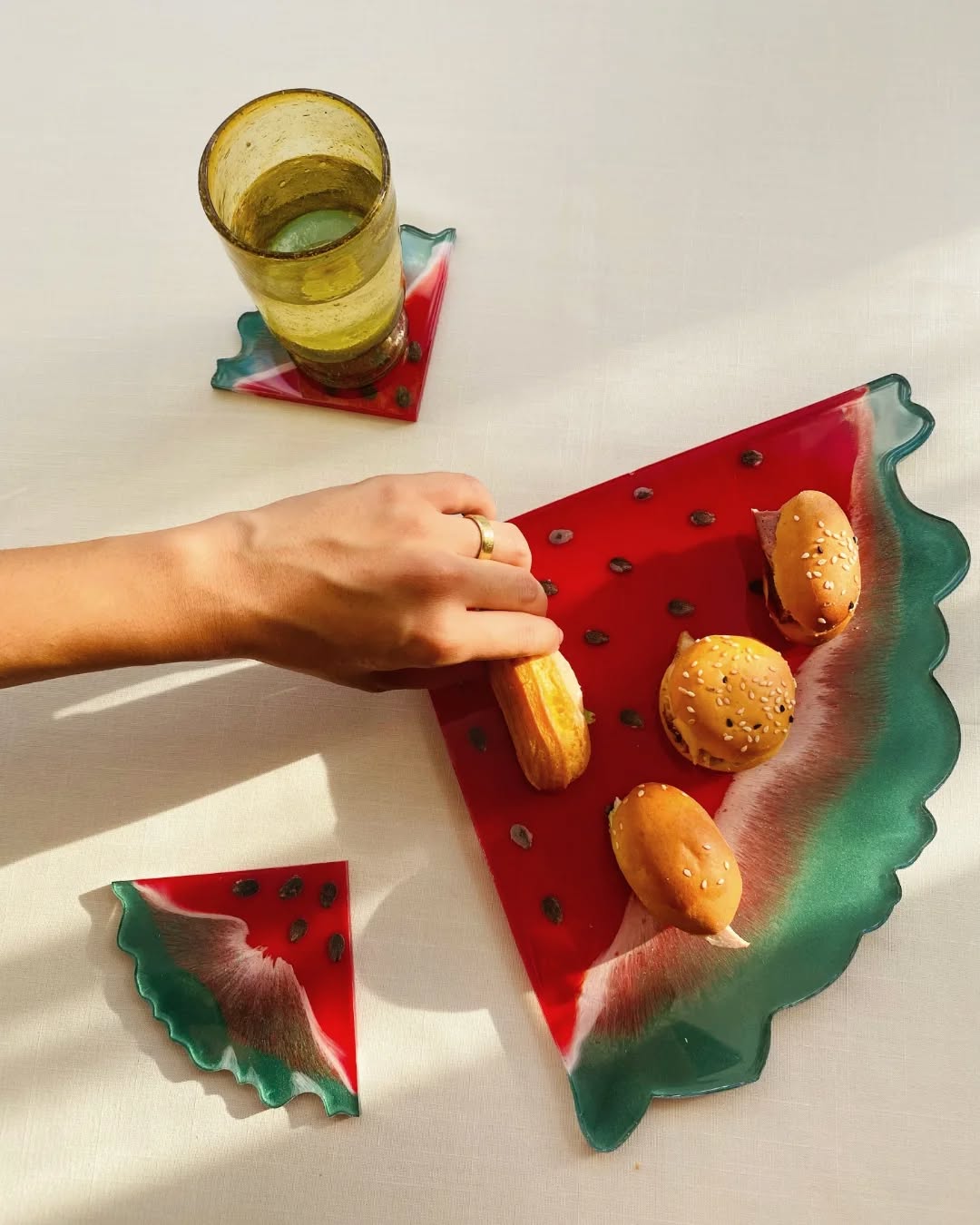 طاولات القهوة والوسطية في Crafted Galleria متوفرة بخامات خرسانة طبيعية خام او مطلية بلمسة ريزن لامعة تزودها تباينات لونية بين الرمادي والسماوي او البيج حسب ذوقك وتقدر تختار مقاسها اللي يناسب مساحة الصالون
