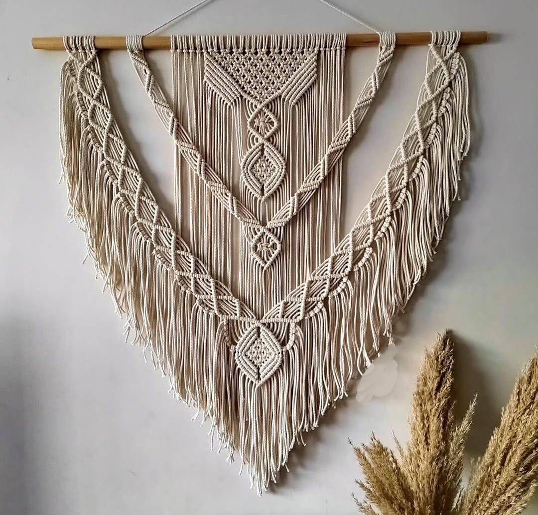 أما الكوشنز المكرمية فهي من القطع اللي بتغير شكل الركنة أو الأنتريه بالكامل. الكوشن معمولة بخيوط متينة وزخارف هندسية أو بوهيمية، تخلي المكان دافي ومليان تفاصيل ديكورية من غير ما تحتاج تغير الأثاث نفسه.
