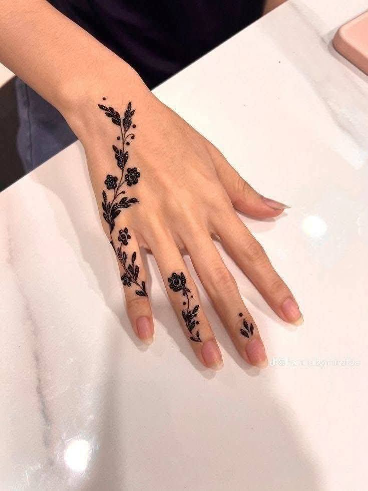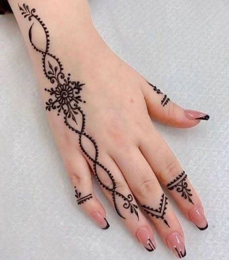 الرسم بياخد وقته حسب حجم وتعقيد التصميم، وغالبًا بيكون من ساعة ونص لتلات ساعات. الرسامة بتبدأ برسم الخطوط الأساسية، وبعدها تشتغل على التفاصيل الدقيقة والزخارف، وفي الآخر ممكن تضيف لمسة بسيطة زي لمعة جل أو بودرة دهبي علشان النقش يبان بشكل أجمل في الصور والفيديوهات.