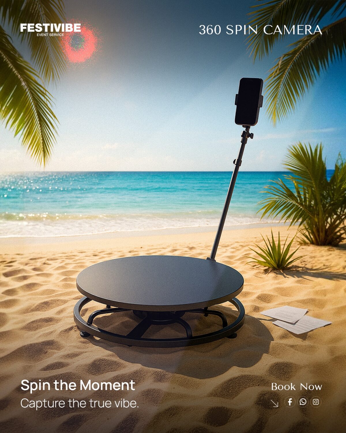 كاميرا الـ360 من أجمد الأفكار اللي بتخلي أي مناسبة حديثة ومليانة حركة. الكاميرا بتصور فيديو للضيوف بزاوية كاملة وهم واقفين على منصة دوارة. النتيجة فيديو قصير بطيء الحركة مليان إبهار، ينفع يتشارك على طول على السوشيال ميديا. التجربة دي مش بس ممتعة لكن كمان بتخلي الضيوف جزء من عرض مميز يفتكروه طول العمر.
