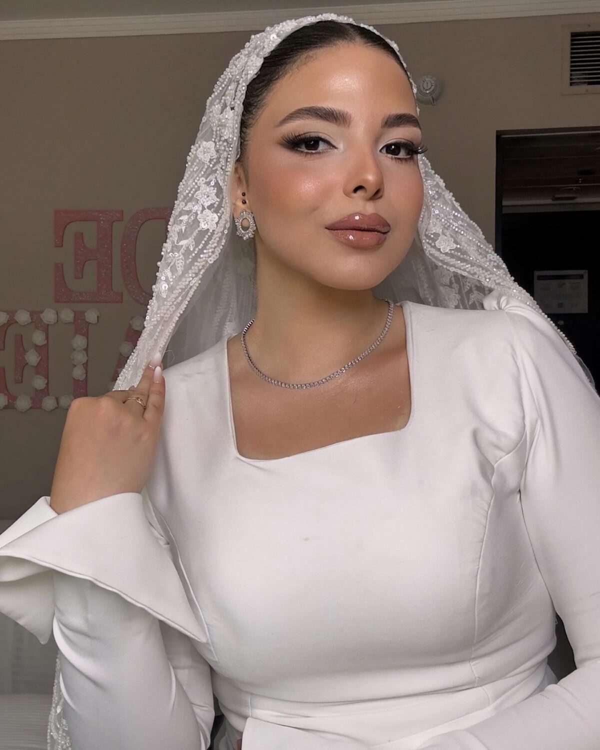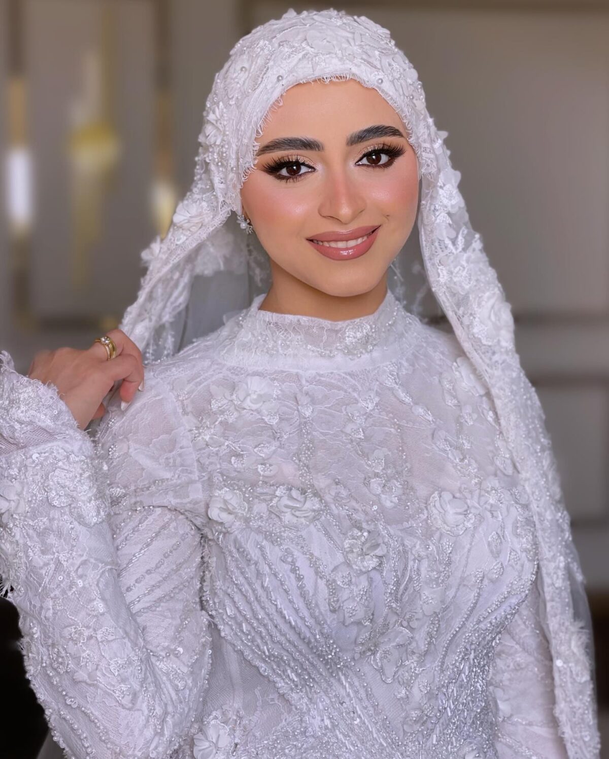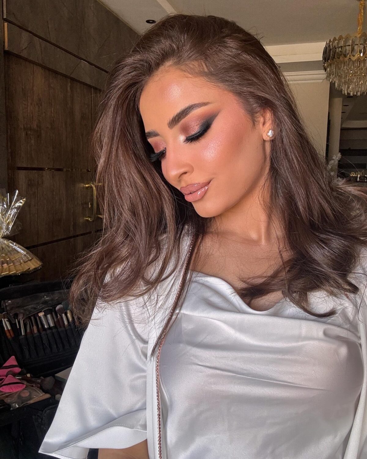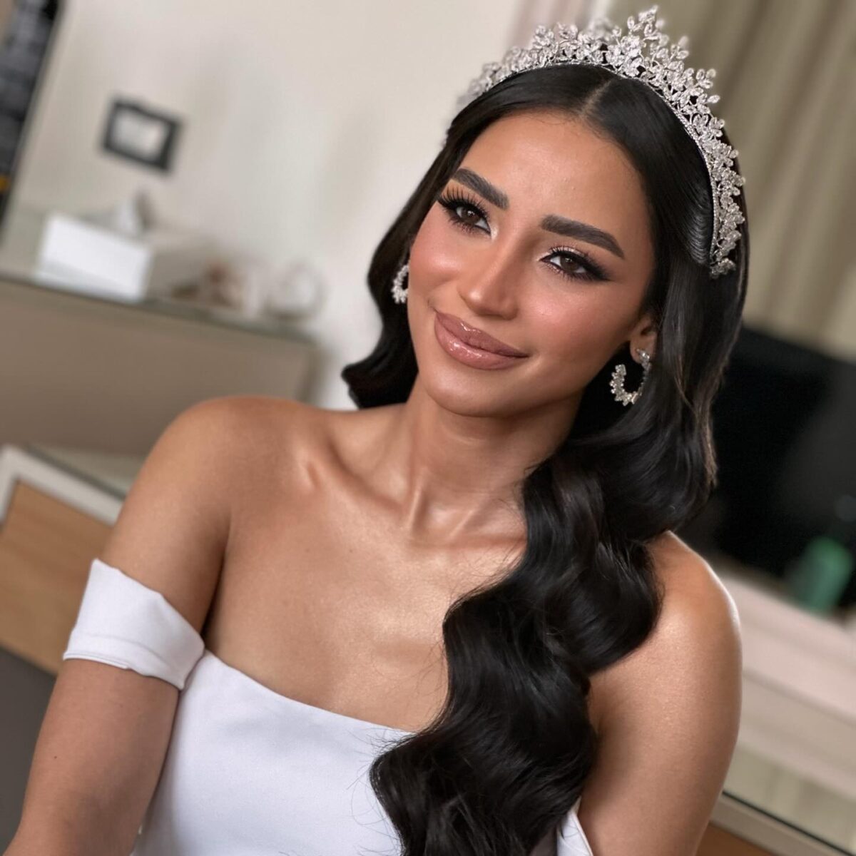 أما لو العروسة حابة لوك جريء أكتر، آلاء بتعرف تعمل التوازن بين القوة والهدوء. ممكن تستخدم سموكي بدرجات رمادية أو نحاسية، وتختار لون شفايف قوي زي الأحمر أو الموف الفاتح، لكن دايمًا بتحافظ إن الشكل النهائي يفضل راقي ومتناسق. عندها إحساس عالي جدًا في توزيع الكونتور والهايلايتر بطريقة ناعمة تبرز الملامح من غير ما تبان خطوط أو طبقات تقيلة.