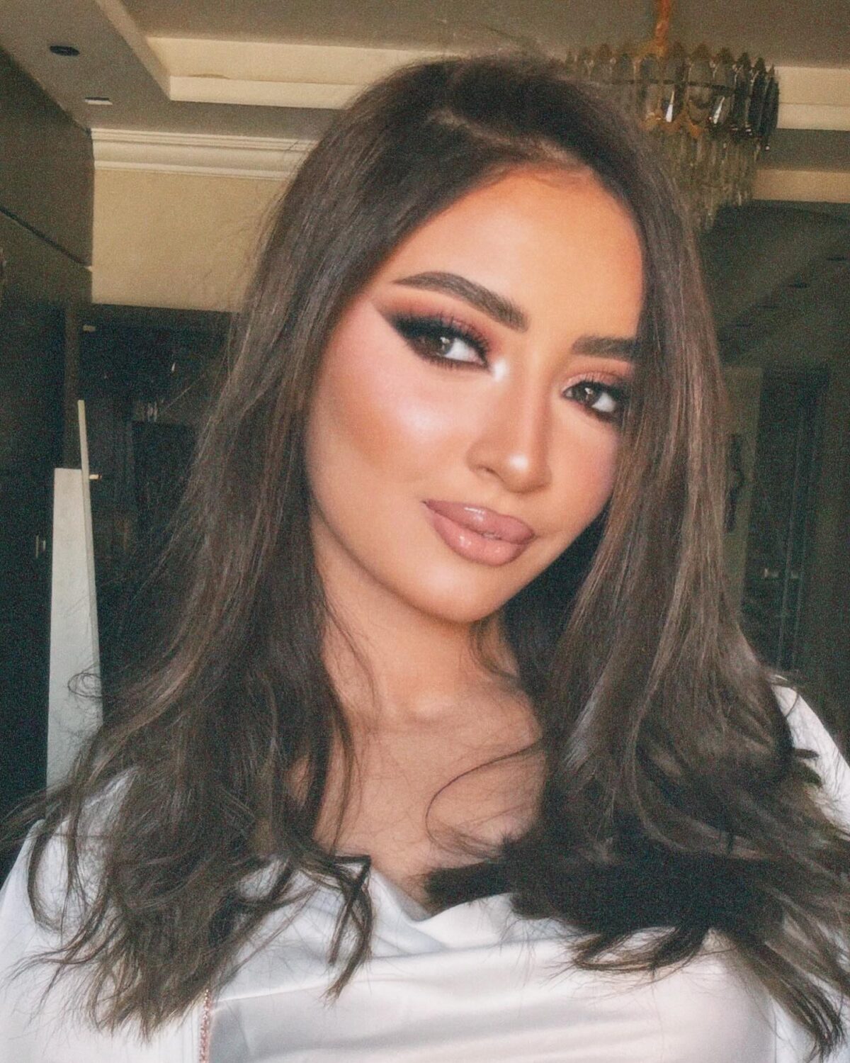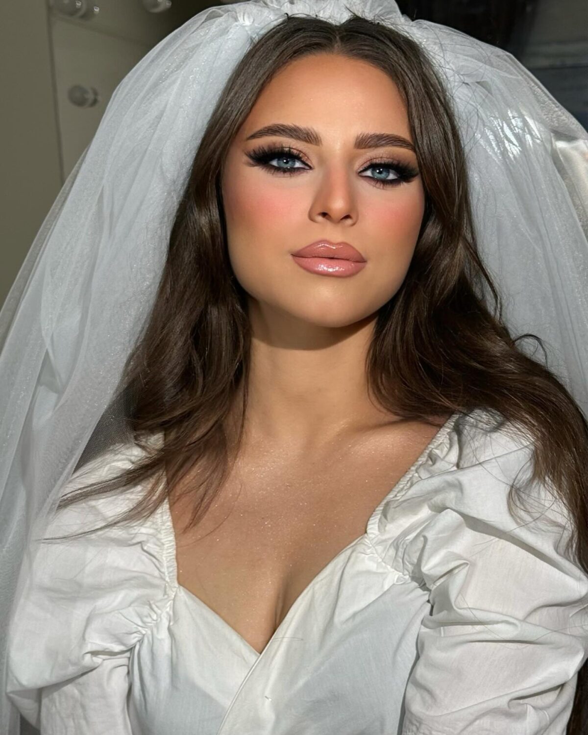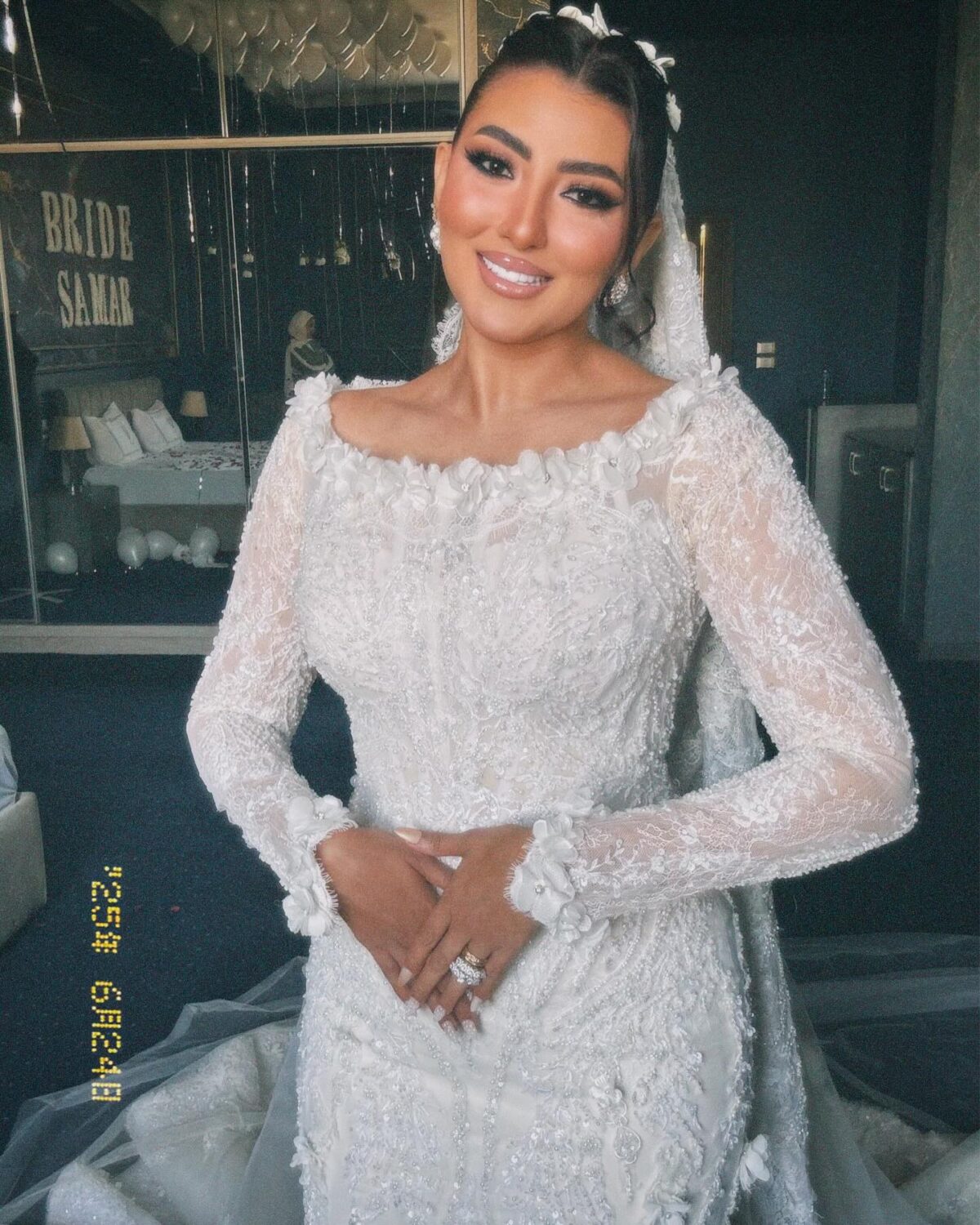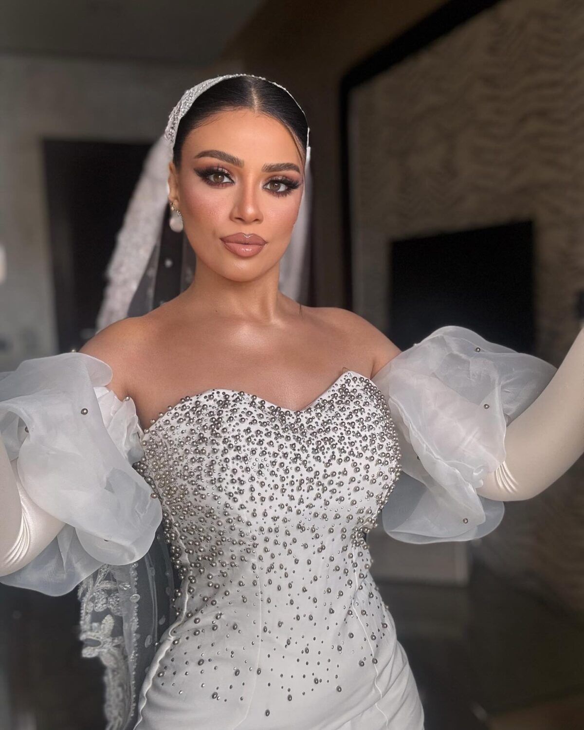 أما لو العروسة حابة لوك جريء أكتر، آلاء بتعرف تعمل التوازن بين القوة والهدوء. ممكن تستخدم سموكي بدرجات رمادية أو نحاسية، وتختار لون شفايف قوي زي الأحمر أو الموف الفاتح، لكن دايمًا بتحافظ إن الشكل النهائي يفضل راقي ومتناسق. عندها إحساس عالي جدًا في توزيع الكونتور والهايلايتر بطريقة ناعمة تبرز الملامح من غير ما تبان خطوط أو طبقات تقيلة.