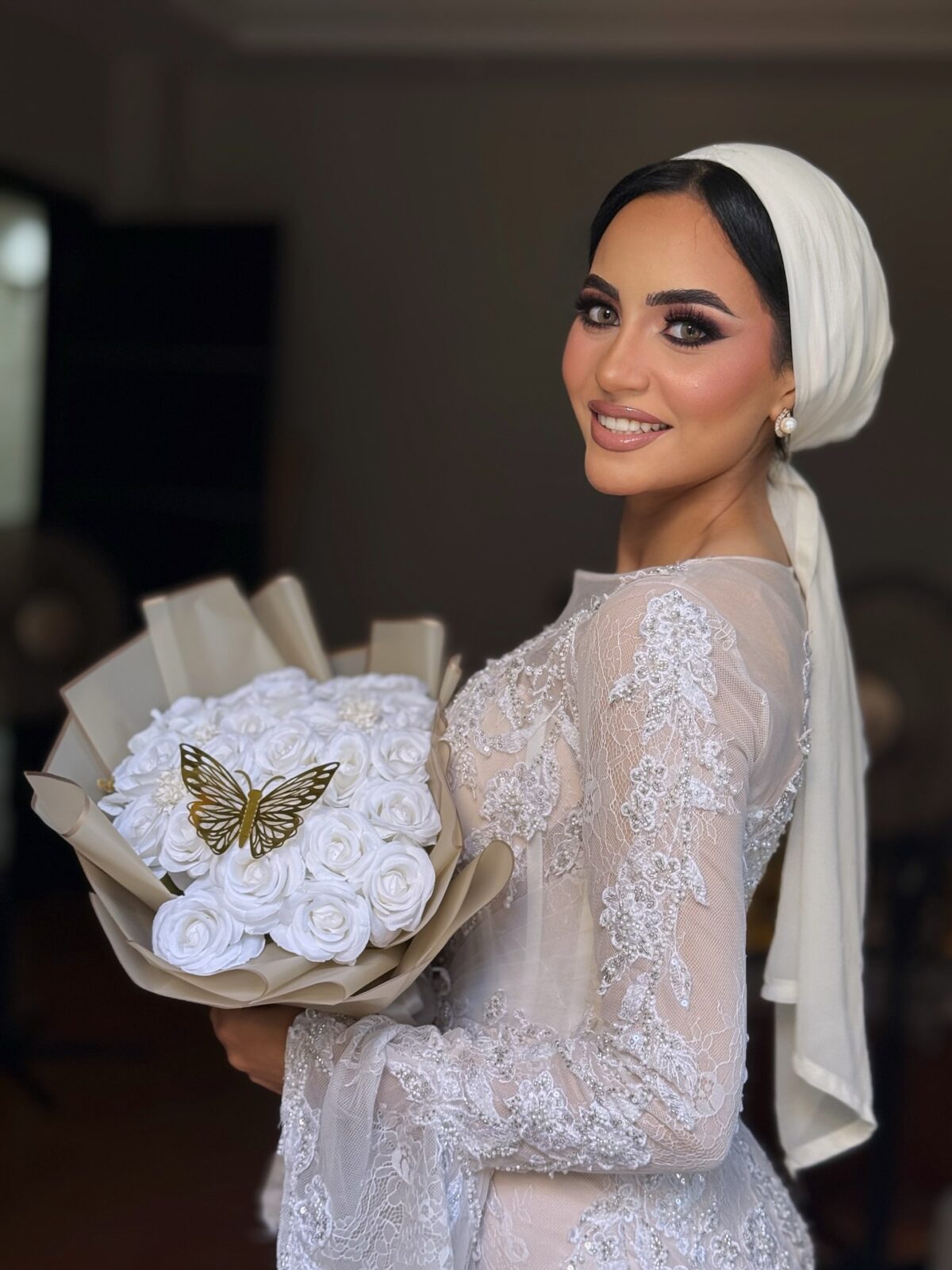 أسماء بتقدم خدمات مكياج متنوعة تناسب مختلف المناسبات. في يوم الفرح، بتركز إنها تدي للعروسة إطلالة ناعمة وراقية تخليها في أجمل صورة في يومها المميز. هي بتاخد وقتها تسمع العروسة كويس وتشاركها في اختيار الألوان اللي تناسب بشرتها والفستان والاكسسوارات، عشان النتيجة النهائية تكون متناغمة وطبيعية.