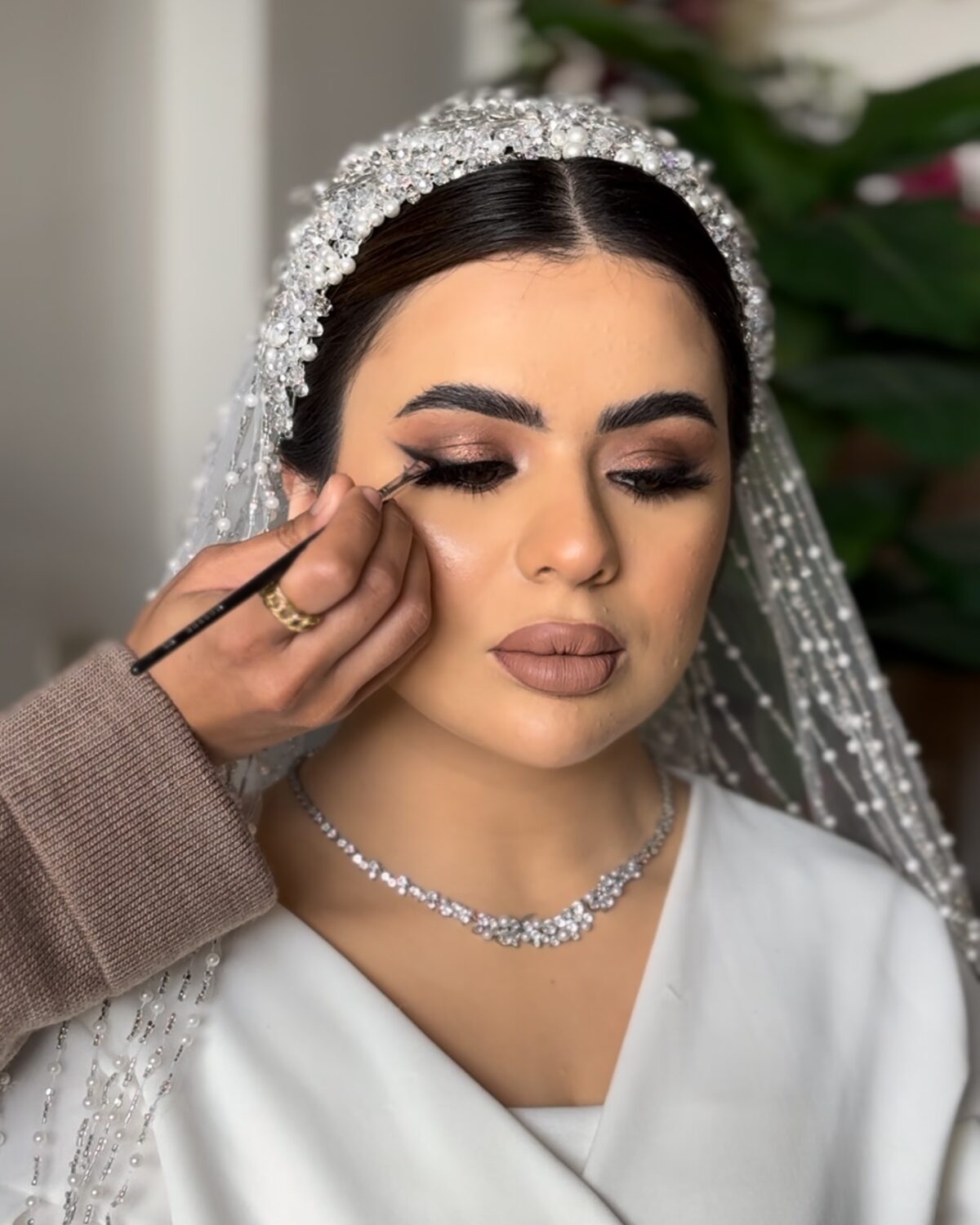 من أول ما العروسة أو العميلة تتعامل معاها، فاطمة بتبدأ بجلسة استشارة بسيطة قبل المناسبة. بتحب تتكلم معاها عن طبيعة الحدث، لون البشرة، والستايل اللي بتحبه، سواء كلاسيك أو ناعم أو جريء. بعد كده بتجرب أكتر من درجة فاونديشن وآيشادو علشان تختار اللي يناسبها أكتر، وده بيخلي النتيجة النهائية دايمًا مثالية ومتناسقة مع شكل وملامح الوجه.