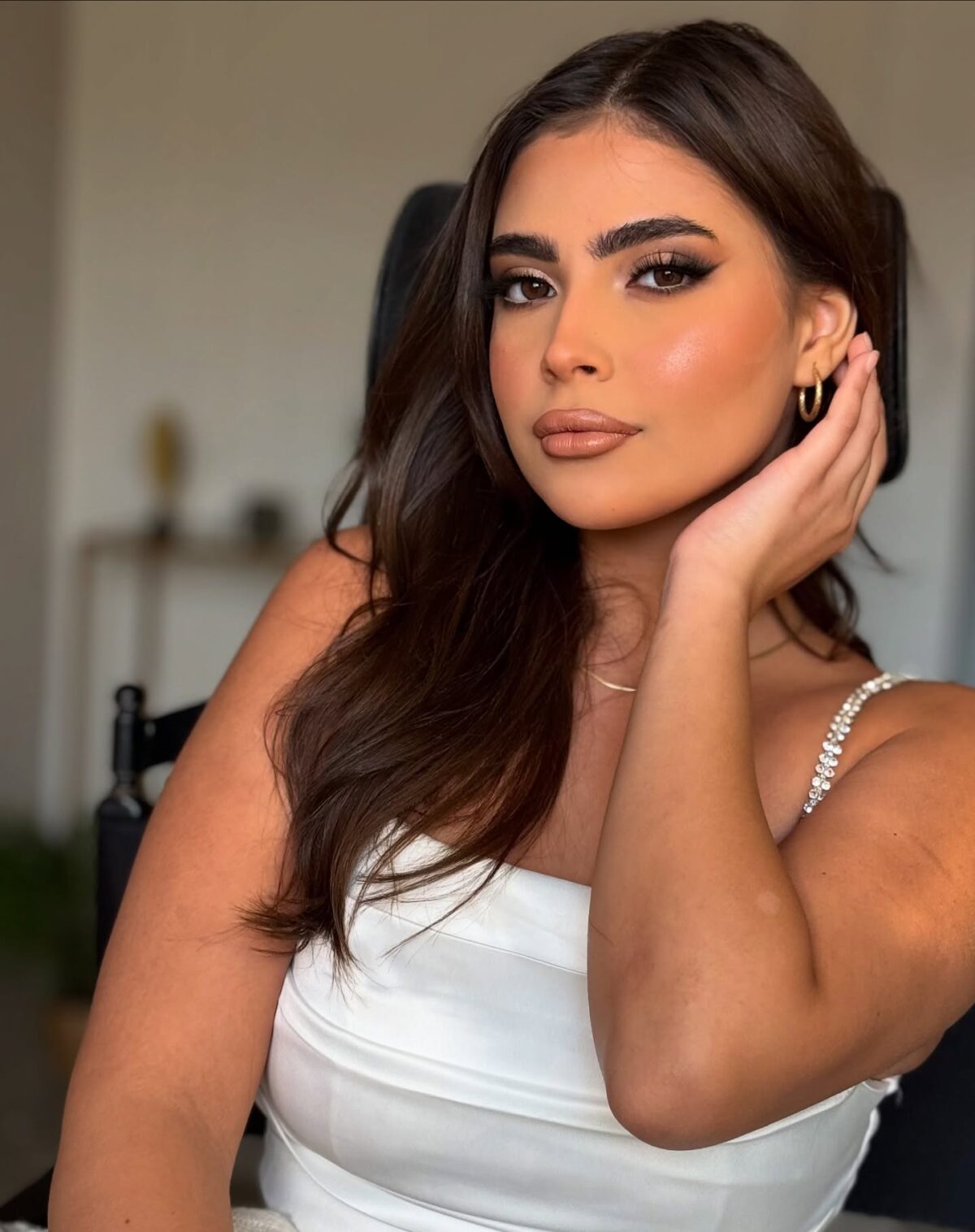 اللي بيميز فاطمة نواب فعلًا إنها بتهتم بأدق التفاصيل اللي بتفرق في النتيجة النهائية. بتظبط الكونتور والهايلايتر بحذر علشان الملامح تبان محددة بشكل طبيعي، وبتتعامل مع الحواجب والرموش كجزء أساسي من التوازن العام للوجه. أسلوبها في الدمج دايمًا ناعم، وده بيخلي الميكب يبان طبيعي في الصور والفيديوهات مهما كانت الإضاءة.