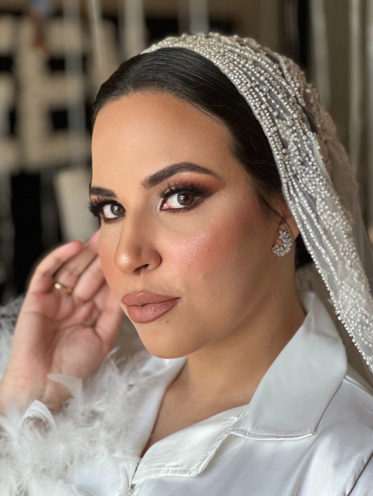 من أول ما تتعامل معاها بتحسي إنها منظمة جدًا وبتفهم العروسة أو العميلة من أول مرة. بتحب تبدأ كل جلسة ميكب بجلسة استشارة بسيطة قبل المناسبة، بتتكلم فيها عن لون الفستان، تسريحة الشعر، وطبيعة المكان سواء قاعة أو فوتوسيشن خارجي. بتجرب كذا درجة فاونديشن وآيشادو علشان تختار الأنسب، والنتيجة دايمًا بتكون لوك طبيعي ومتناغم مع شكل العروسة وشخصيتها.