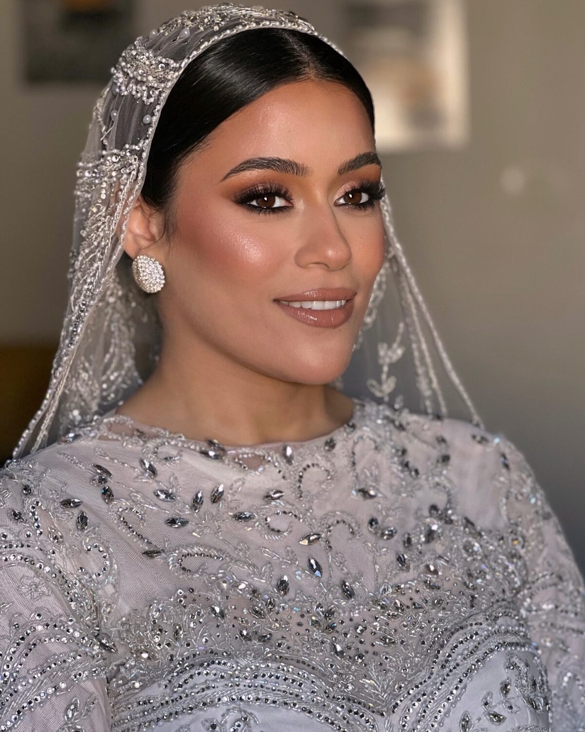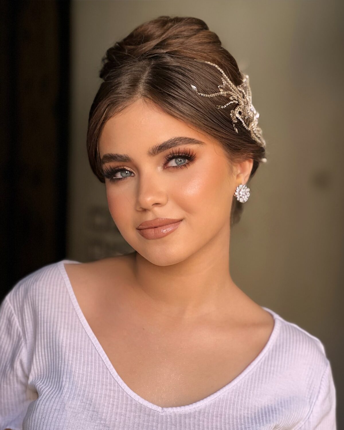 مكياج العيون عند نسمة فياض له لمسة خاصة. بتحب تشتغل بالدرجات الهادية زي البيج والروز لو العروسة عايزة إطلالة ناعمة، وكمان بتتقن السموكي بدرجات الرمادي والبني للسهرات الكبيرة. بتركب رموش صناعية خفيفة تدي شكل واسع للعين من غير ما تبقى تقيلة، وبتحدد الحواجب بخطوط ناعمة علشان الشكل النهائي يبان أنيق وطبيعي.