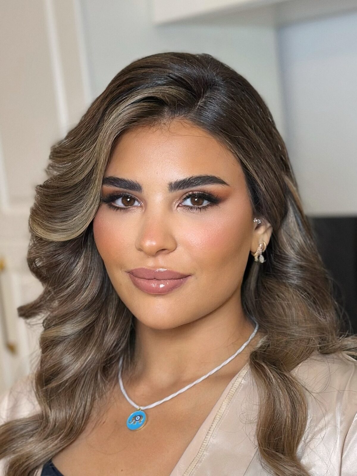 من أول ما تتعامل معاها بتحسي إنها بتفهمك بسرعة وبتعرف تختارلك اللوك اللي يليق عليكي. بتحب تبدأ دايمًا بجلسة استشارة قبل المناسبة، بتتكلم فيها معاكي عن لون الفستان، تسريحة الشعر، نوع بشرتك، وطبيعة المكان سواء قاعة أو فوتوسيشن خارجي. الخطوة دي بتخليها تختار الدرجات المناسبة من الفاونديشن والآيشادو والروج علشان اللوك النهائي يطلع متكامل ومريح للعين.