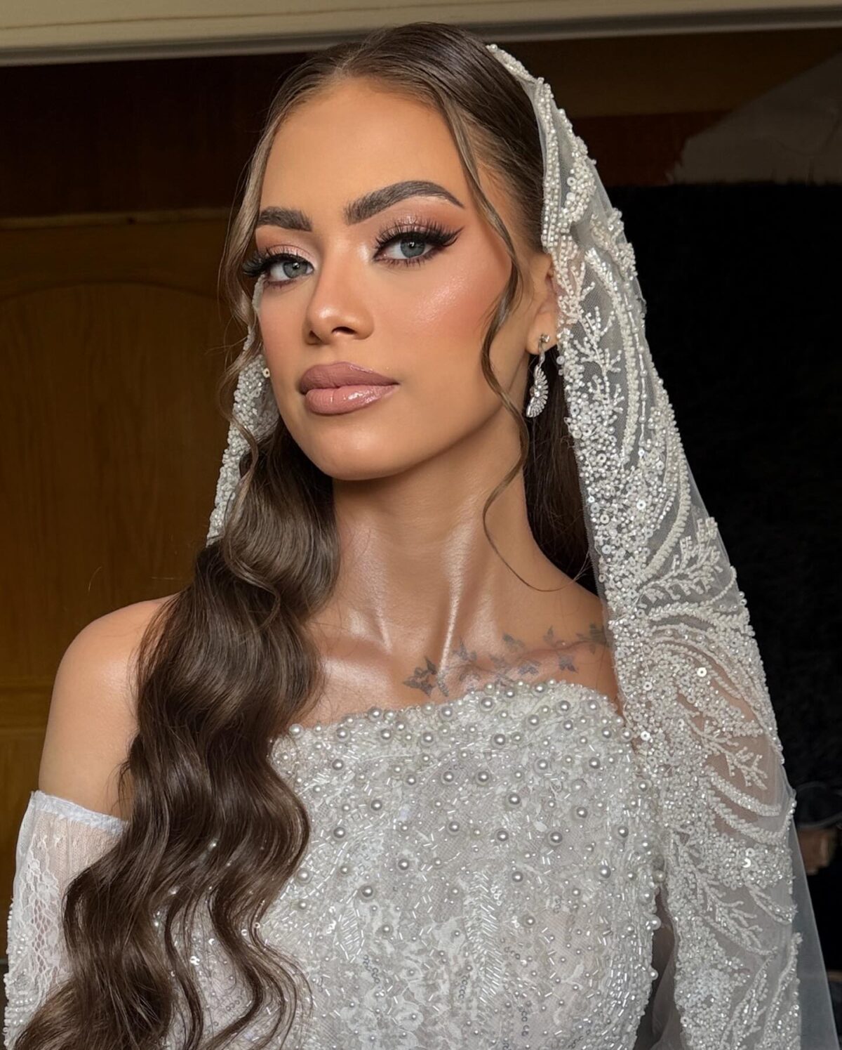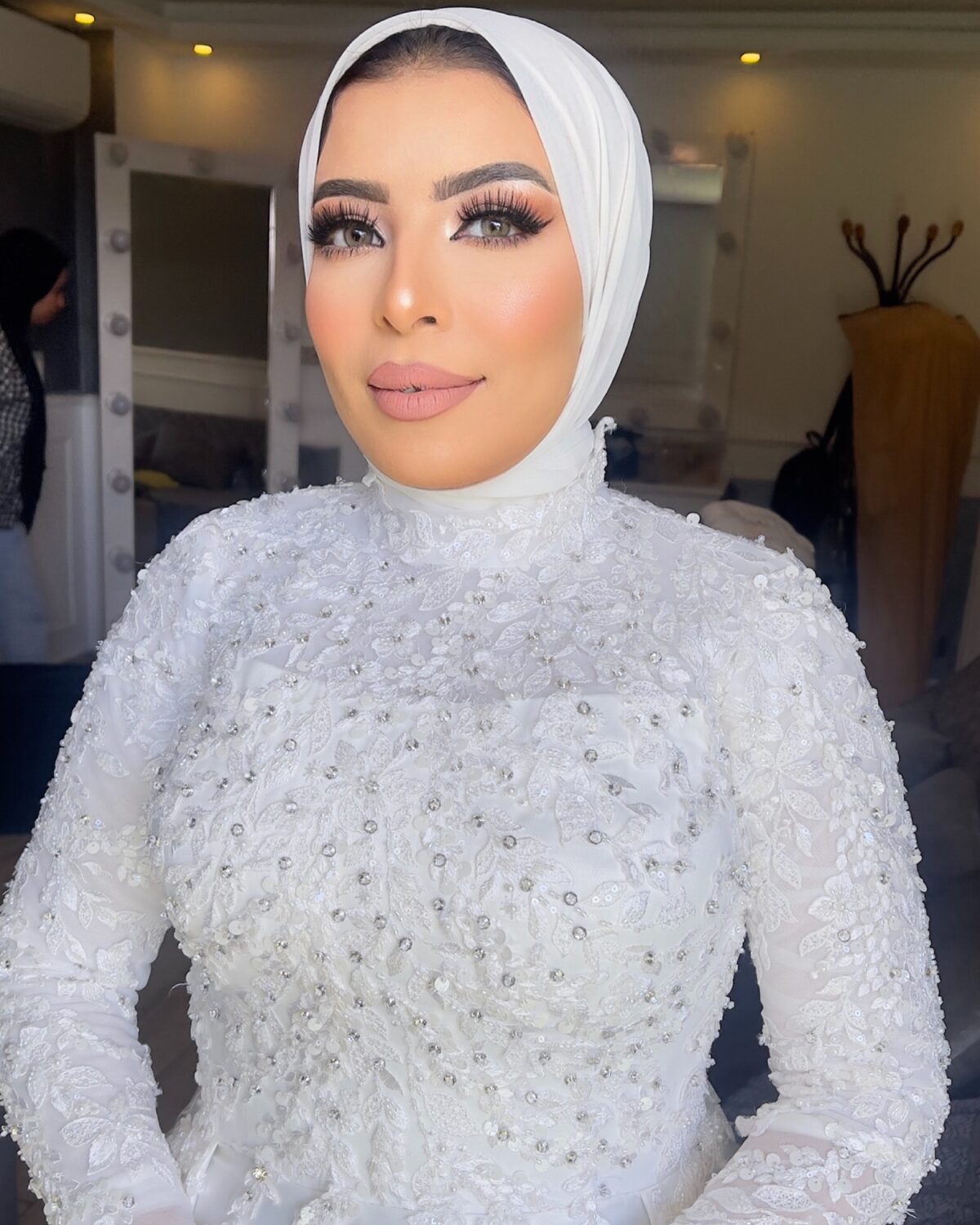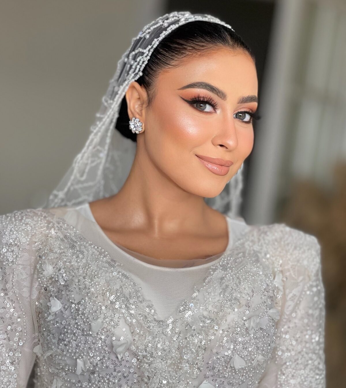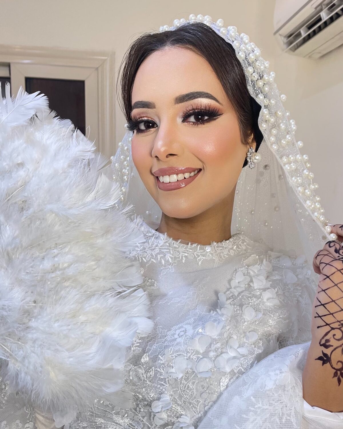 رحمة كمان عندها اهتمام كبير بالتفاصيل الصغيرة زي الكونتور والهايلايتر، وبتوزعهم بحساب علشان الملامح تبان محددة من غير ما يكون في خطوط واضحة. ده غير إنها بتركز على شكل الحواجب جدًا، وبتضبطها بطريقة طبيعية متنسقة مع شكل الوجه. النتيجة في الآخر بتكون مظهر ناعم ومتوازن يليق بالعروسة في يومها الكبير.