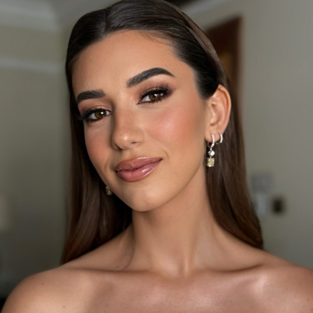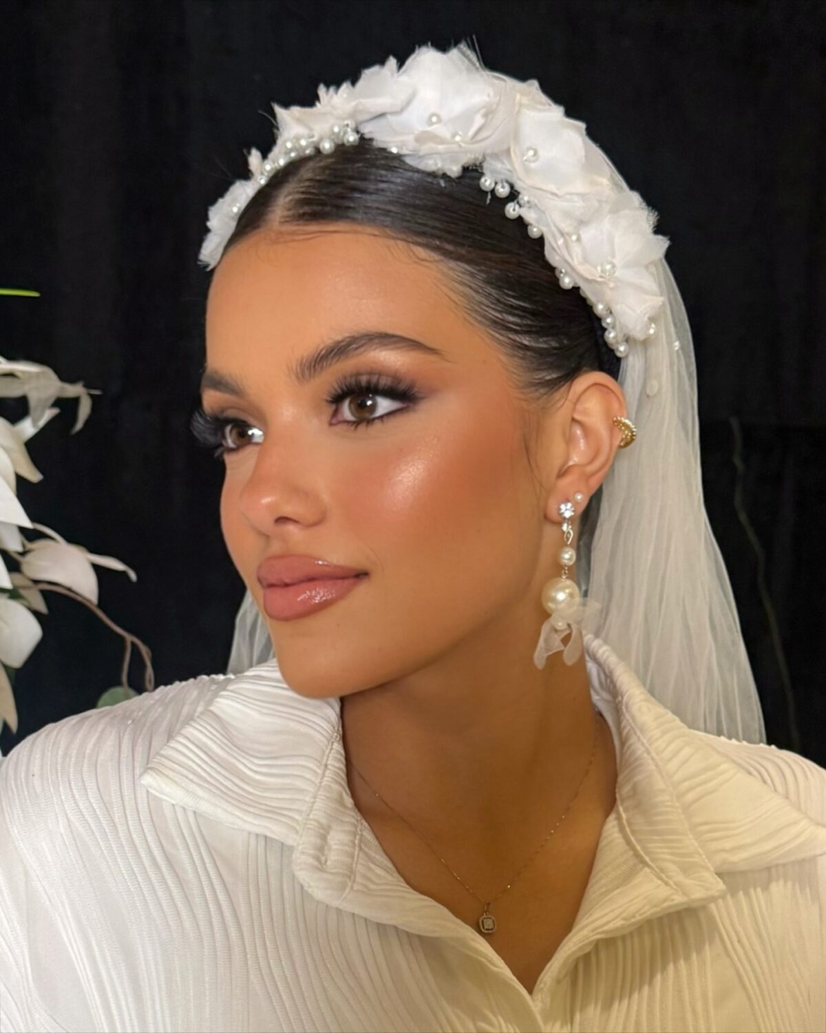 اللي بيميز شغل شمس فعلًا إنها بتشتغل بدقة وهدوء وبتدي كل تفصيلة وقتها. بتظبط شكل الحواجب والرموش والإضاءة بطريقة متوازنة، وبتعرف إزاي تدي البشرة إشراقة خفيفة تخلي الميكب طبيعي ومناسب للصور والفيديوهات. شغلها دايمًا بيكون فيه توازن بين البساطة والفخامة، وده اللي بيخلي العروسة تبان جميلة وراقية في نفس الوقت.