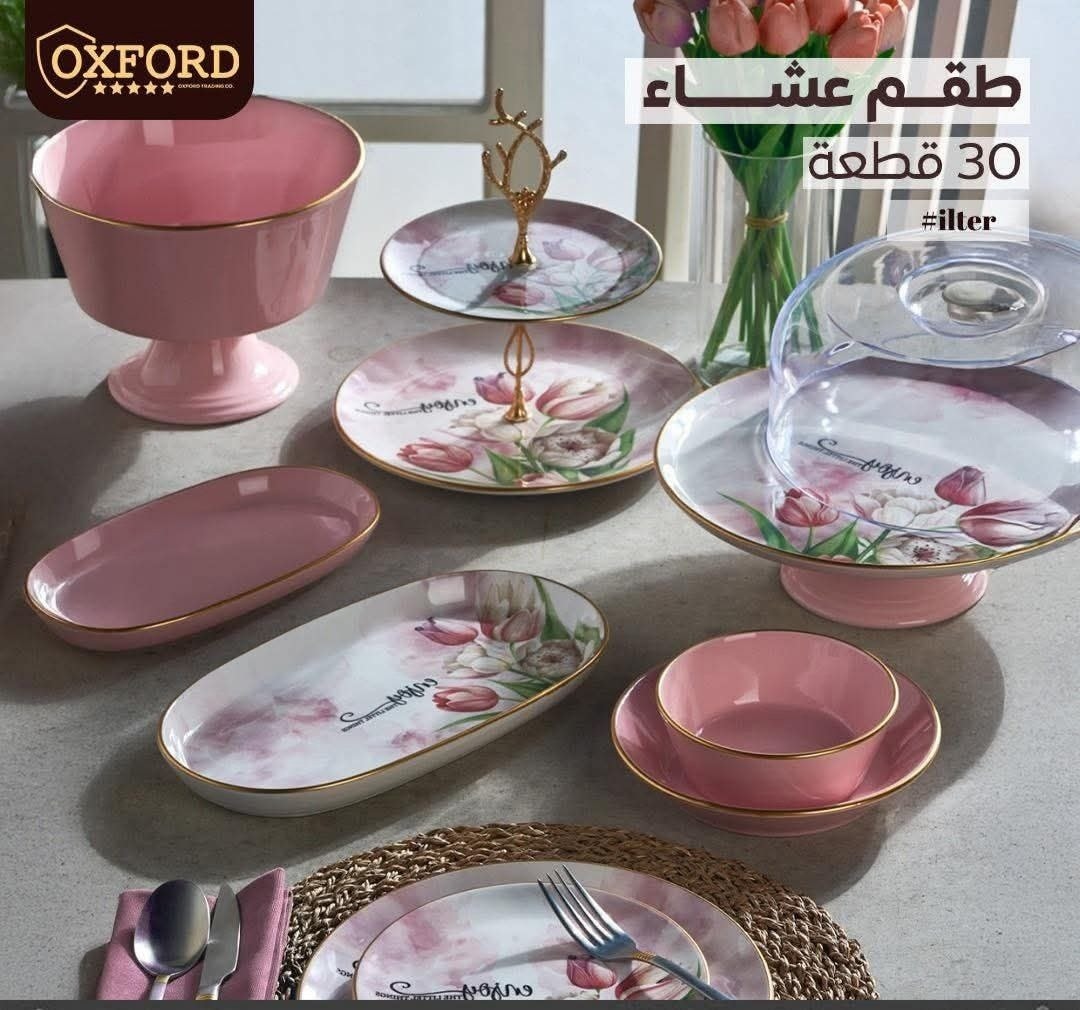 أما قسم السفرة والتقديم، فمليان أطقم أطباق بورسلين وزجاج بألوان راقية ونقوش بسيطة تناسب المودرن والكلاسيك. كاسات عصير، فناجين شاي وقهوة، صواني تقديم وأباريق عملية وأنيقة بتدي شكل متكامل وتخلي الضيافة أسهل وأشيك سواء في المناسبات أو الروتين اليومي.