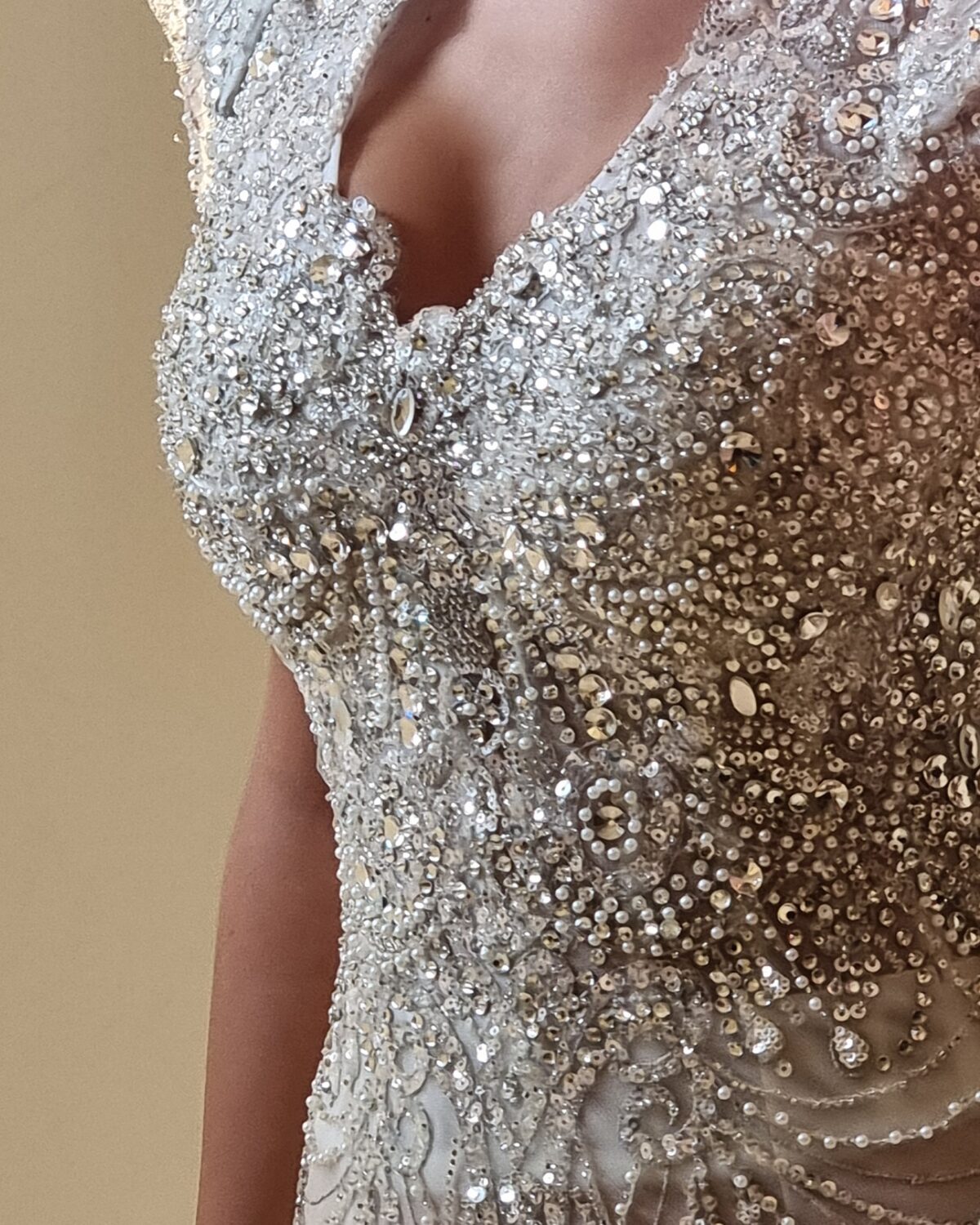 الميزة في الأتيليه إن تجربة البروفات معمولة بشكل مريح ومنظم. كل بروفة ليها وقتها، تقدري تجربي براحتك وتشوفي نفسك من زوايا مختلفة قدام المرايات الكبيرة. الفريق بيراجع معاكي التفاصيل الدقيقة زي الطول مع الكعب، ثبات الكتف، وتوازن الديل. الحاجات دي ساعات العروسة ما تاخدش بالها منها لكنها اللي بتخليكي يوم فرحك مرتاحة طول الوقت سواء في الحركة أو في الصور.