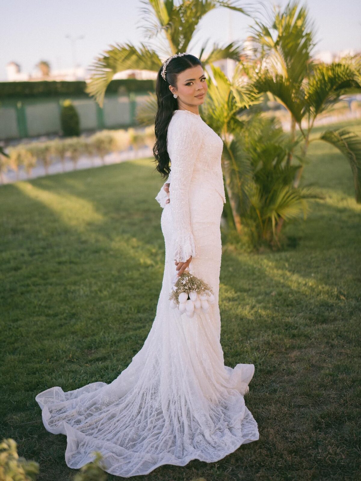 كمان Shimaa Mohammed Wedding Dresses مش بيقف عند الفستان بس، لكنه بيوفرلك إكسسوارات تكمّل الإطلالة. عندهم طرَح بأنواعها وأطوالها المختلفة، تيجان سواء بسيطة أو مزينة بالكريستال، وأحزمة أنيقة حوالين الخصر. كل القطع دي معمولة علشان تكمل شكل الفستان وتخليكي طالعة بإطلالة متكاملة.