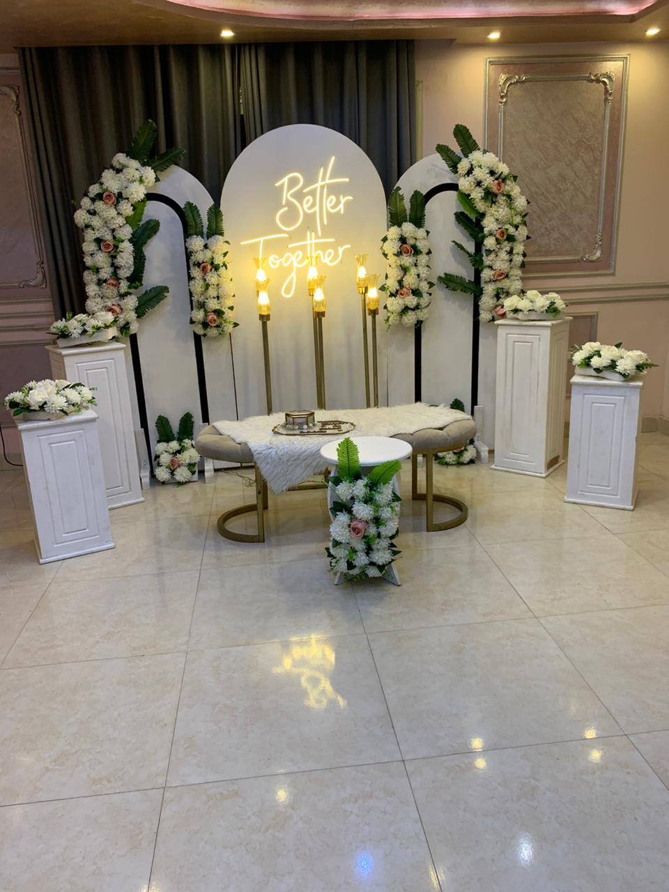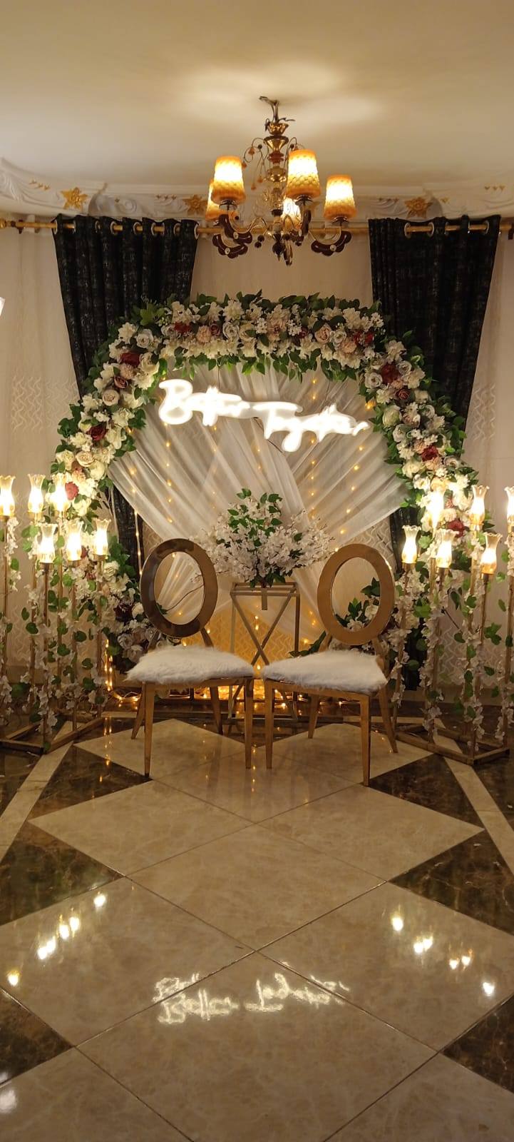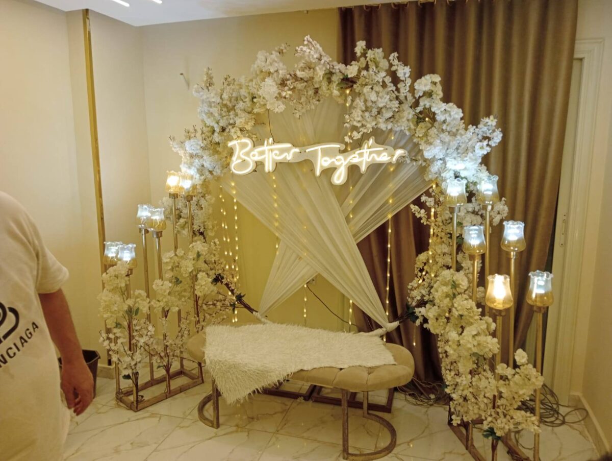 من ناحية الميزانية، رودينا لتجهيز الحفلات مرنين جدًا وبيعرفوا يشتغلوا على كل المستويات. عندهم أفكار ذكية تخلي الشكل النهائي يطلع فخم جدًا من غير تكلفة عالية. ممكن يعتمدوا على ورود موسمية بدل المستوردة، أو يستخدموا الإضاءة كعنصر ديكور يغني عن خامات غالية، والنتيجة دايمًا بتكون شكل أنيق ومبهج.