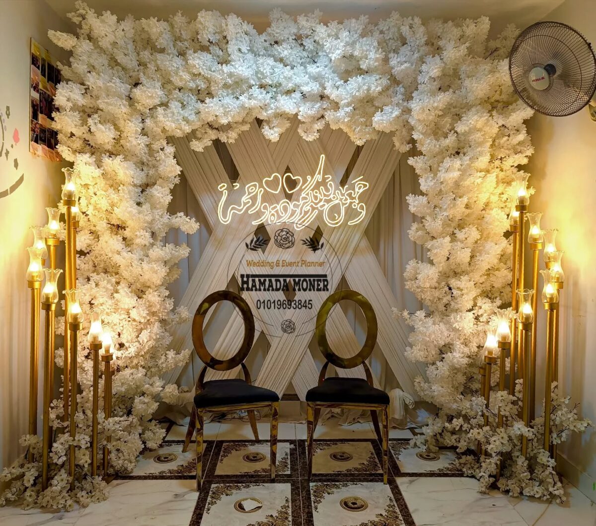 من ناحية الميزانية، حمادة منير بيعرف يقدم بدائل ذكية تخلي الشكل النهائي أنيق ومناسب من غير ما يضغط على التكلفة. ممكن يقترح استبدال أنواع ورود غالية بمزيج مناسب، أو يركز على توزيع إضاءة قوي يغني عن تفاصيل كتير. الهدف دايمًا إن النتيجة النهائية تبقى راقية وتشبه العروسين.
