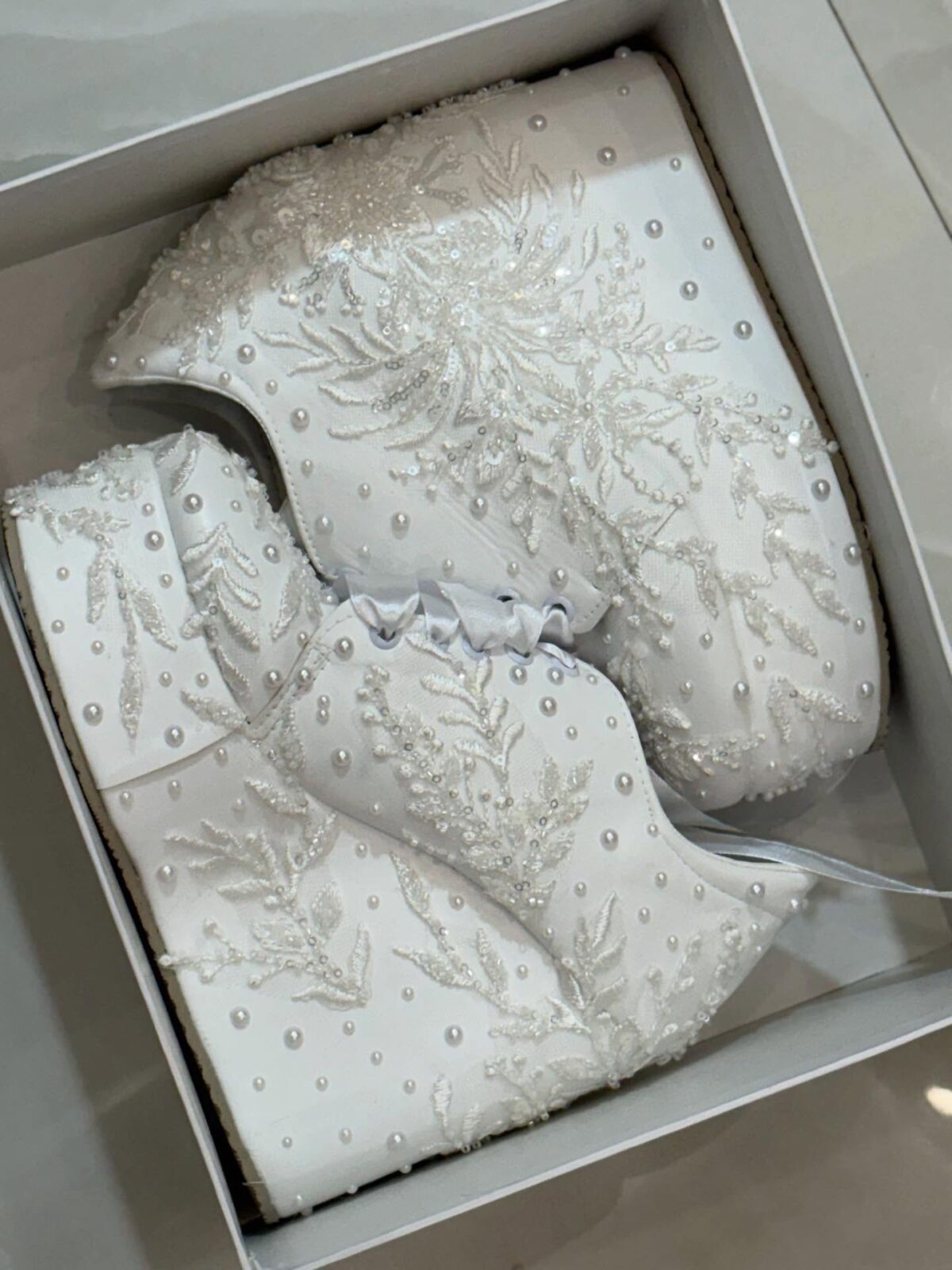 "shoe_bridal_libre" بيقدم كوتشيهات معمولة مخصوص للعرايس، بتصميمات أنيقة ومتنوعة، ومزينة بالاسترس اللامع اللي يدي لمعة حلوة تحت فستان الفرح.